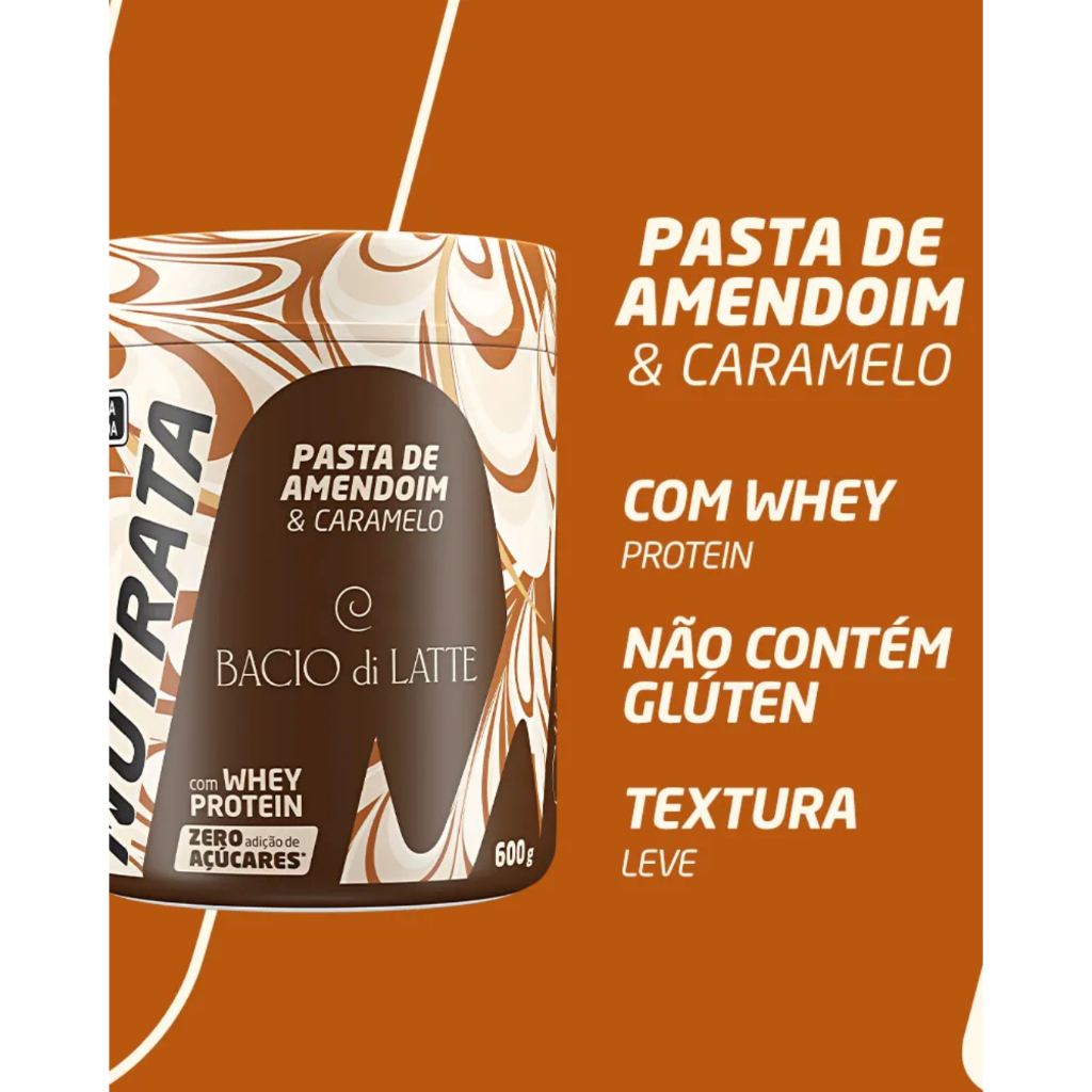 ------------------------------------------------------------------------------- Nutrata Pasta de Amendoim Bacio di Latte 600g ------------------------------------------------------------------------------- Com zero adição de açúcares e livre de glúten, é uma opção saborosa e segura para dietas restritivas. A combinação perfeita de sabor e nutrição para quem busca prazer sem abrir mão da saúde. Esta pasta de amendoim com caramelo salgado oferece uma textura leve e cremosa, enriquecida com whey protein para aumentar sua ingestão diária de proteínas, ideal para quem pratica atividades físicas ou deseja uma alimentação balanceada. - Pasta de amendoim com caramelo salgado e whey protein - Zero adição de açúcares, ideal para controle glicêmico - Não contém glúten, segura para celíacos e intolerantes - Textura leve e cremosa que agrada diversos paladares - Embalagem de 600g, para consumo prático e prolongado Aproveite um produto que une o melhor do sabor artesanal Bacio di Latte com a qualidade e inovação Nutrata, perfeito para energizar seu dia com sabor e saúde.