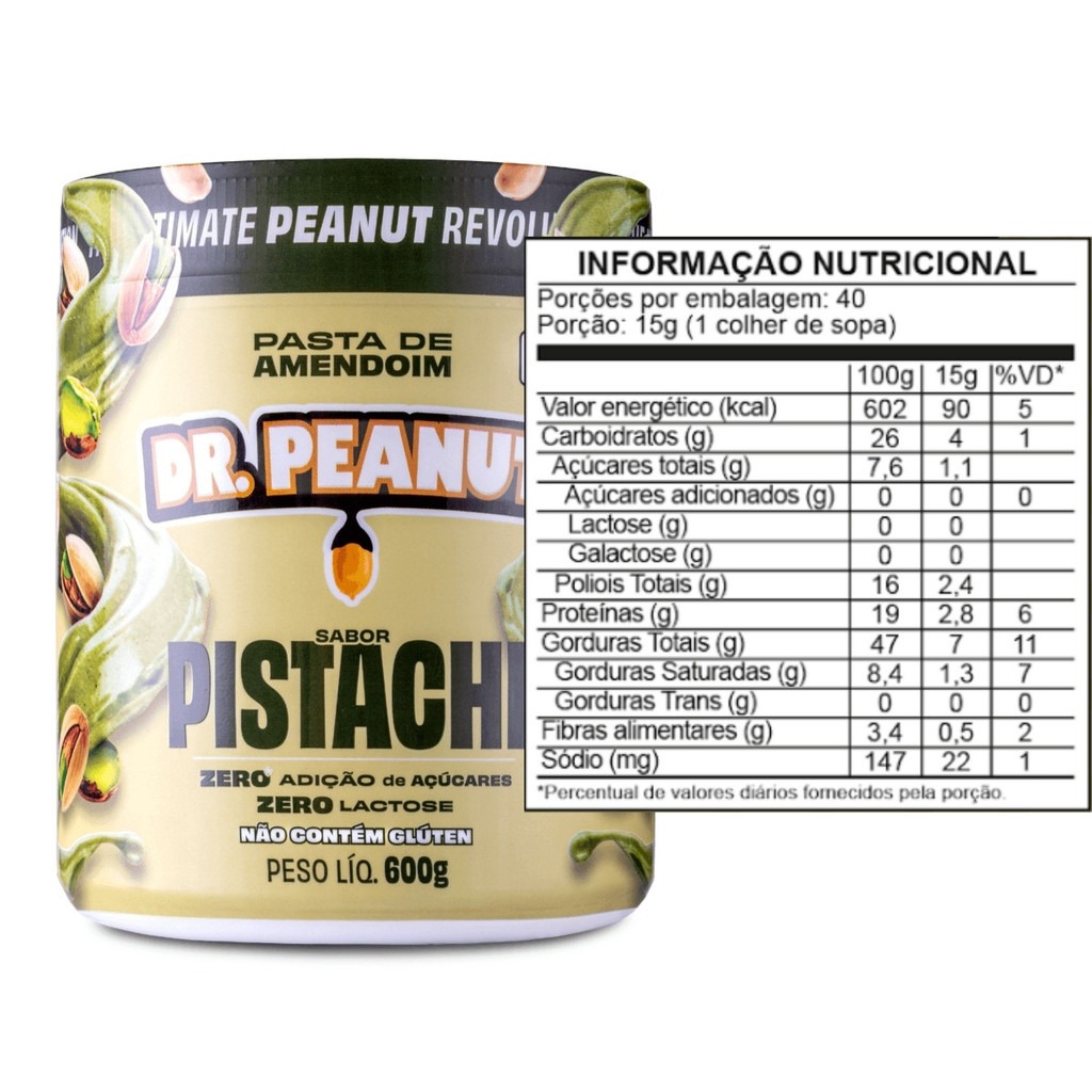 Pasta de Amendoim Sabor Pistache Dr. Peanut Sobre o produto: A Pasta de Amendoim Sabor Pistache Dr. Peanut é uma combinação irresistível entre o sabor intenso do amendoim torrado e o toque sofisticado do pistache. Com textura cremosa e ingredientes selecionados, é uma excelente opção para quem busca um alimento saudável, saboroso e nutritivo. Formulada com whey protein, não contém adição de açúcares e é livre de glúten, sendo ideal para dietas com restrição de açúcares ou glúten, além de atender quem procura praticidade sem abrir mão de qualidade. Como consumir: Pode ser consumida pura, direto da colher, adicionada a pães, torradas, frutas, shakes, panquecas, crepiocas, receitas fit ou sobremesas. Ideal para o café da manhã, lanches intermediários ou como pré/pós-treino. Benefícios: - Rica em proteínas de alta qualidade (com whey protein) - Fonte de gorduras boas (mono e poli-insaturadas) - Contém pistache, que agrega sabor e nutrientes - Textura cremosa e sabor marcante - Zero adição de açúcares - Sem glúten - Ideal para dietas equilibradas e estilo de vida saudável - Pode ajudar na saciedade e na recuperação muscular Alergênicos: Contém amendoim, pistache, leite e derivados do leite (incluindo lactose). Pode conter castanha de caju, castanha do Pará, amêndoas, avelã, nozes e derivados de soja. Ingredientes: Pasta de amendoim integral, pistache, proteína concentrada do soro do leite (whey protein), óleo de coco, aromatizantes e edulcorantes naturais (taumatina e estévia). Advertências: Este produto não substitui uma alimentação equilibrada e seu consumo deve ser orientado por um profissional de saúde ou nutricionista. Conservar em local seco e arejado. Após aberto, consumir preferencialmente em até 30 dias. A separação do óleo é natural; misture antes de consumir. Conclusão: A Pasta de Amendoim Sabor Pistache Dr. Peanut é a escolha perfeita para quem busca sabor, nutrição e praticidade em um só produto. Com ingredientes selecionados e uma formulação voltada ao público que valoriza saúde e performance, ela complementa perfeitamente qualquer rotina alimentar.