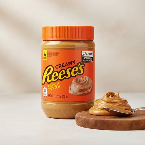 A Pasta de Amendoim Creamy da Reese’s é uma pasta de amendoim ultracremoso, inspirada no sabor inconfundível dos chocolates Reese’s. Feita com amendoins selecionados e torrados, possui uma ultracremosa e homogênea, proporcionando uma experiência suave e indulgente a cada colherada. Versátil e deliciosa, pode ser consumida pura, passada em pães e torradas, ou usada como ingrediente para incrementar sobremesas, shakes e receitas diversas. Além do sabor irresistível, é uma fonte natural de proteínas e gorduras boas, tornando-se uma opção energética para qualquer momento do dia. Ingredientes: Amendoim, açúcar, óleos vegetais hidrogenados (colza, algodão soja), sal, óleo vegetal de amendoim, melaço, antiespumante mono e diglicerídeos de ácidos graxos. ALÉRGICOS: CONTÉM AMENDOIM E DERIVADOS DE SOJA E AMENDOIM. NÃO CONTÉM GLÚTEN.