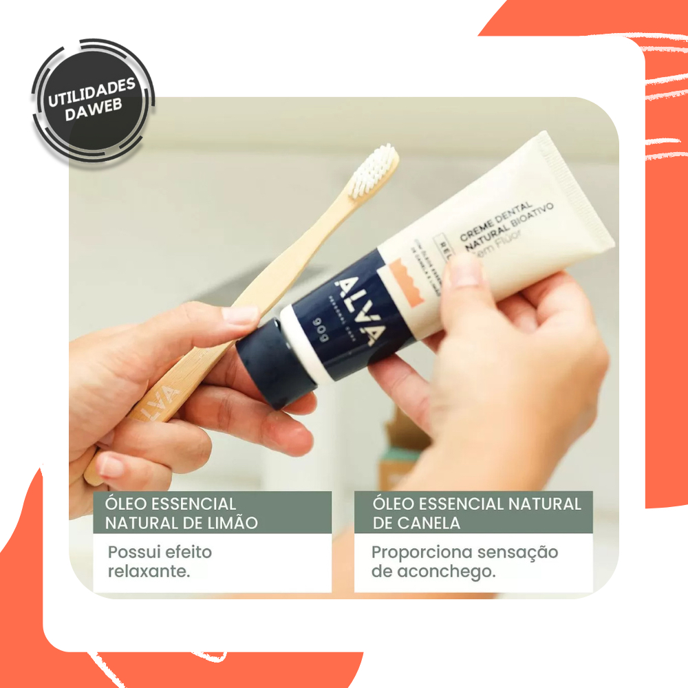 Pasta de Dente CREME NATURAL Sem Flúor Natural Alva BIOATIVO ÓLEOS ESSENCIAIS DE CANELA E LIMÃO 90G