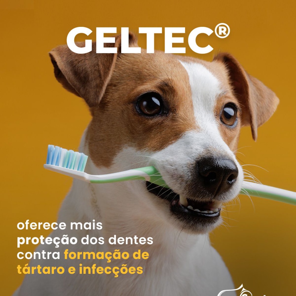 Geltec Creme Dental 30g para Cachorro e Gato Sabor refrescante de menta Elimina o Mau Hálito Descrição: GELTEC® é um antisséptico oral, à base de Ascophyllum nodosum, Mentol, Eucaliptol e Timol. Indicado para a higienização bucal dos cães e gatos e para prevenção do aparecimento da placa bacteriana. Ação: GELTEC®, através do Ascophyllum nodosum, proporciona ação antioxidante, o que torna a placa bacteriana porosa, fácil de ser removida e diminui sua formação pela diminuição do pH da saliva. Através do mentol, diminui a captação dos receptores opioides, garantindo um discreto efeito anestésico e através do eucaliptol e do timol, proporciona ação antisséptica, interrompendo ou diminuindo a proliferação de microrganismos. Vantagens: •GELTEC® contribui para melhorar o hálito e menos lesões dentárias nos pets. •GELTEC® contribui para manter dentes saudáveis. •GELTEC® melhora a qualidade de vida dos pets. •GELTEC® possui componentes de qualidade que auxiliam na higienização bucal. •GELTEC® contribui para uma maior proteção dos dentes e contra formação de tártaro e infecções. •GELTEC® age auxiliando de forma bastante favorável na prevenção e tratamento de doenças periodontais. •GELTEC® apresenta uma cômoda posologia (2 a 3 aplicações por semana), sendo conveniente ao tutor. •GELTEC® é fácil de administrar, com uso de uma gaze limpa aplicada sobre os dentes. •GELTEC® auxilia no tratamento das afecções orais. •GELTEC® oferece economia aos tutores nos cuidados com seus pets. Indicação: Uso oral, promovendo a higienização bucal em cães e gatos e auxiliando a remoção do tártaro. Dose/Posologia: Aplicar os produtos nos dentes e gengiva do animal. Gaze ou escova podem ser utilizadas para auxiliar na escovação de 2 a 3 vezes por semana. Apresentação: GELTEC® está disponível em bisnagas de 30 mL.