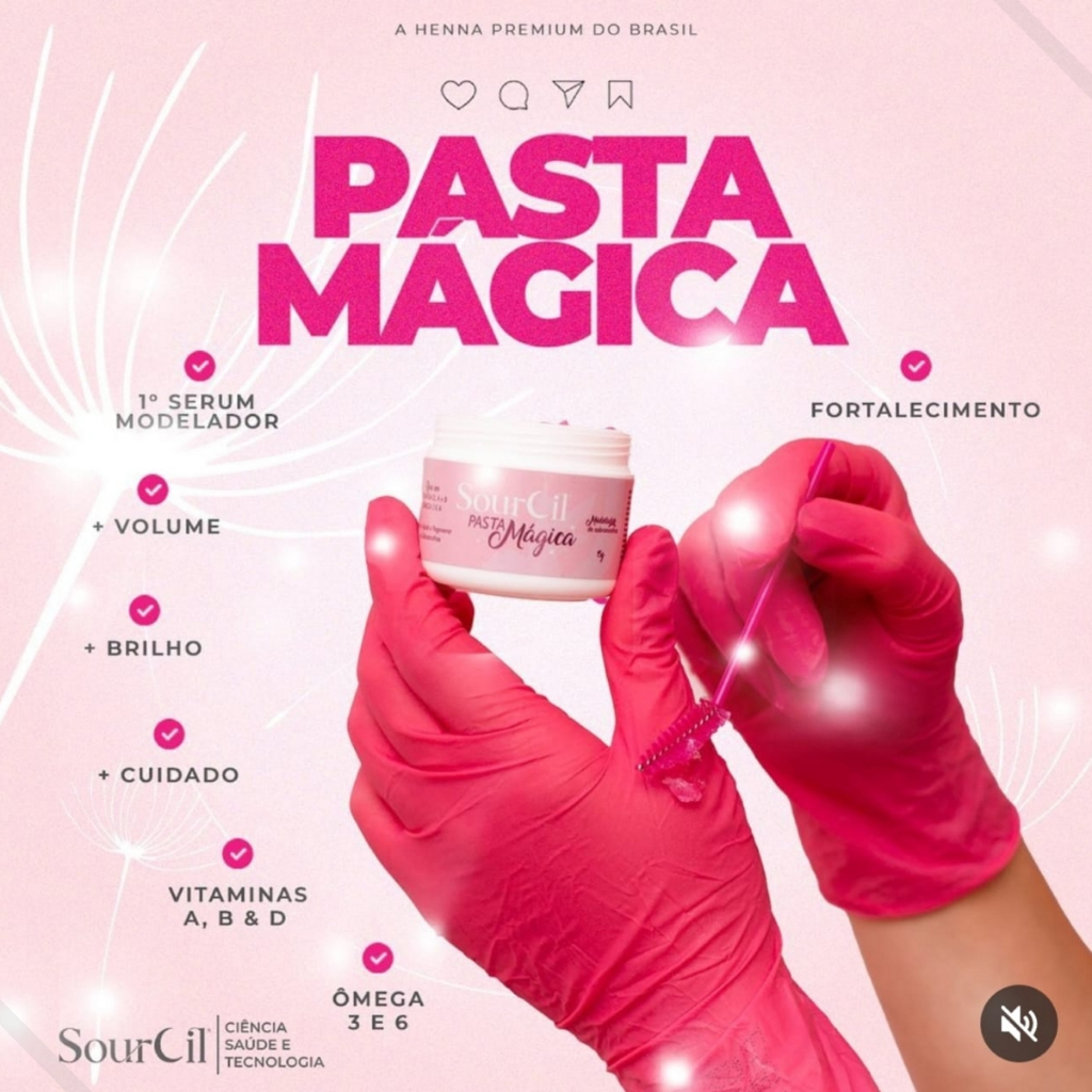 PASTA MÁGICA MODELADORA DE SOBRANCELHAS Regeneração, crescimento e volume em um só produto. Nosso mais novo serum de cuidados para as sobrancelhas. ( contém vitamina D,A,B - omega 3 e 6 ). Modo de uso: aplique uma pequena porção com a escova para sobrancelhas, espalhe por toda superfície, realizando movimentos de baixo para cima, a fim de surgir volume na sobrancelha, destacando os fios, esse processo ajuda também para que o serum possa penetrar ainda mais na superfície do pelo. REGISTRO ANVISA : 25351.069592/2022-49 NUMERO AUTORIZAÇÃO ANVISA: 4021185