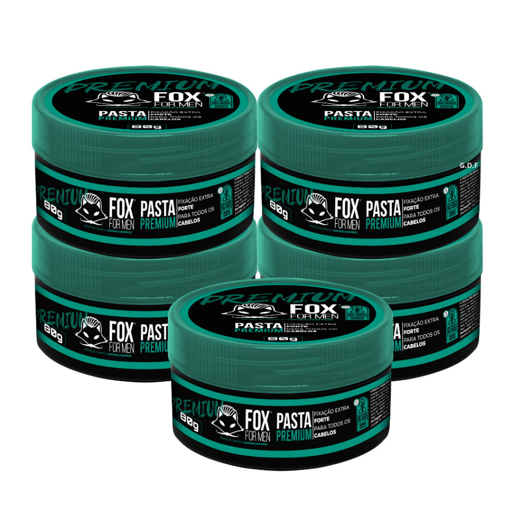 5 Pasta Modeladora Premium 80g - 5 Pasta Modeladora Teia 80g – 5 Pasta Modeladora Toque Seco 80g – 5 pasta modeladora Orange 80gPasta Modeladora de Cabelo Toque Seco 80g da Fox For Men :• Fixação Forte para um penteado estiloso.• Efeito Natural ou Seco para características de estilo.• Textura Elástica conforto confortável.• Defina uma Estrutura dos Fios para um look preciso.• Leveza no Cabelo, evitando aspecto pesado.• Controle Fios Rebeldes para um visual impecável.• Uso Diário para consistência no estilo.• Hidratação capilar para fios saudáveis.• Ideal para o Estilo Masculino.Pasta Premium 80g Fox Para Homens :• Fórmula à Base de Água para todos os tipos de cabelo.• Modelagem de Penteados e Finalização Natural.• Prevenção do Ressecamento Capilar e Fortalecimento dos Fios.• Brilho Natural e Fixação Extra Forte para um visual impecável.• Escolha Ideal para Penteados Casuais e Estilosos.Pasta Modeladora Laranja 80g da Fox For Men :• Fixação média para um penteado versátil.• Fragrância Cítrica Energizante.• Textura Suave e Fácil de Aplicar.• Modelagem Precisa e Duradoura.• Controle Proporcional e Estilo.• Hidratação Leve para Fios Saudáveis.• Ideal para Adicionar um Toque de Cor e Energia ao Cabelo.Pasta Modeladora Teia 80g Fox For Men• Modelagem de Penteados e Finalização Natural.• Prevenção do Ressecamento Capilar e Fortalecimento dos Fios.• Brilho Natural e Fixação Extra Forte para um visual impecável.