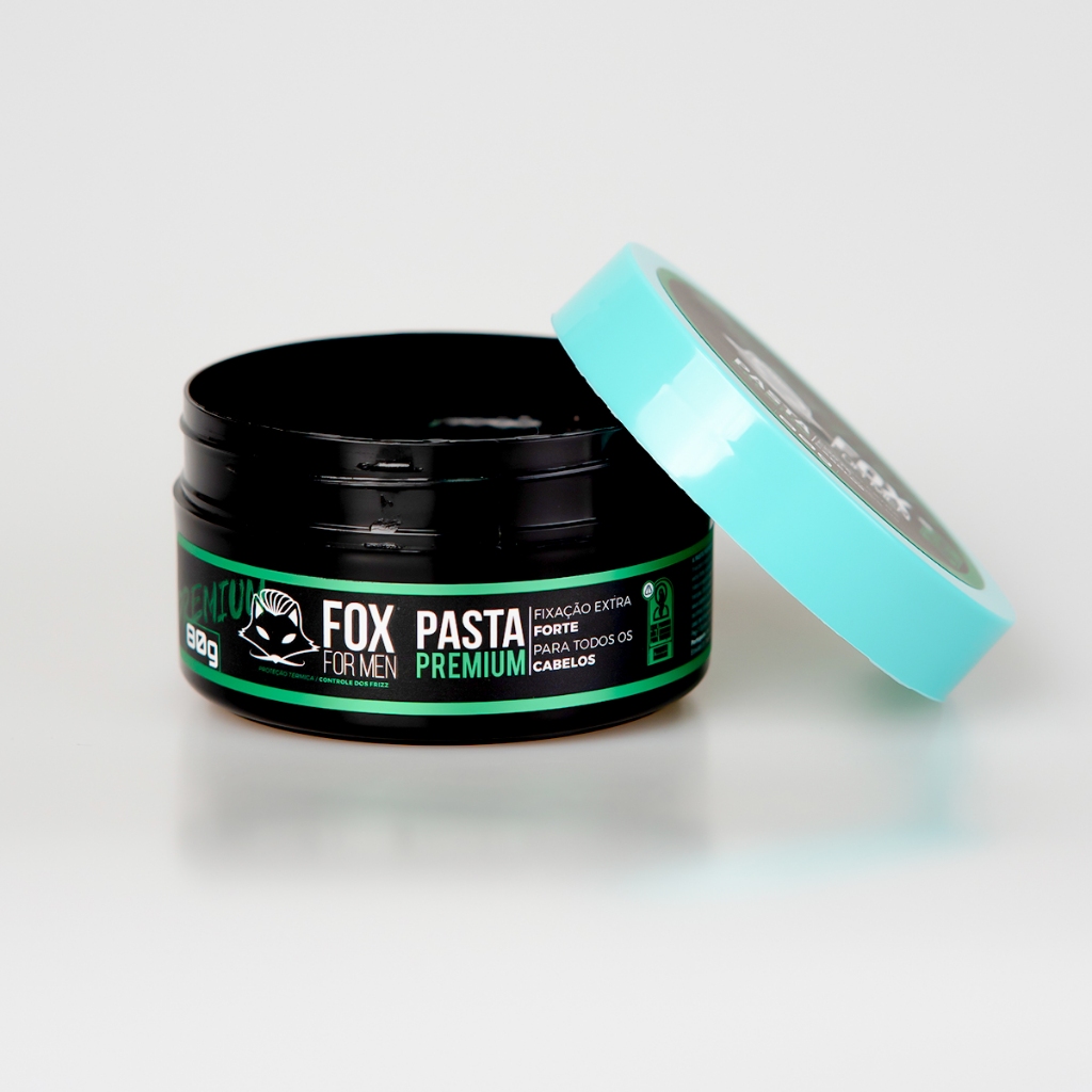 PASTA MODELADORA PREMIUM FOX FOR MEN 80GR - EFEITO BRILHO MOLHADO A PASTA PREMIUM da FOX FOR MEN é feita à base de água para todos os tipos de cabelos. Com ela, você conseguirá modelar penteados e finalizar o visual de forma natural e sem deixar resíduos. Previne o ressecamento do cabelo e fortalece os fios, possuindo brilho natural e fixação extra forte, excelente opção para um estilo de penteado mais casual. Modo de usar: Aplique em cabelos úmidos ou seco com a quantidade suficiente para modelar (quantidade sugerida 2 a 5 g). Pentear ao seu modo. Para retirar basta lavar com água corrente.