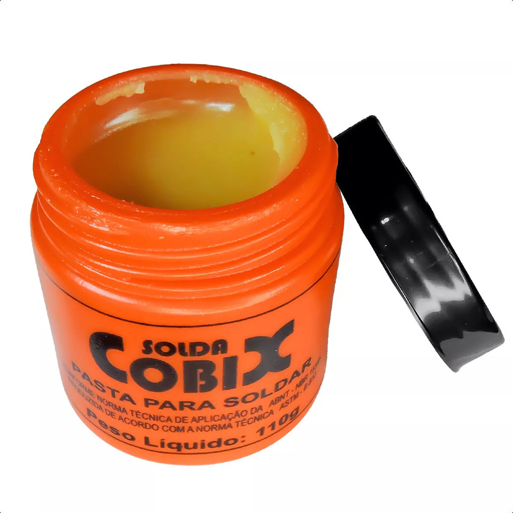 A pasta para soldar Cobix 110g tem como finalidade garantir o contato elétrico entre as partes que serão soldadas e garantir resistência mecânica. O não uso deste produto pode tornar difícil o processo de soldagem, pois a solda pode escorrer ou grudar em locais onde não deveria. Esta pasta garante que o estanho grude no metal com uma maior facilidade, direcionando a solda para o local correto! Pasta não é condutiva! A Cobix é uma empresa referência no ramo de produtos para soldagem. Para garantir que o produto final atenda as especificações da empresa, é realizado um acompanhamento do controle de qualidade durante a fabricação de cada um dos produtos. ----------------------------------------------------------------------------------------------------- PRAZO DE ENVIO Produtos a Pronta Entrega! Enviamos as compras efetuadas até as 13:00 no mesmo dia, e para as compras efetuadas após as 13:00 enviamos no dia seguinte. GARANTIA Enviamos os produtos bem embalados e com Nota Fiscal. Todos os produtos tem a garantia de troca/devolução dentro de 7 dias após o recebimento (SEM USO), e a garantia do fabricante são de 12 meses para defeitos de fábrica. QUEM SOMOS NÓS A GSERRA está a mais de 20 anos no mercado de representação comercial, agora expandindo sua atividade para o E-Commerce, mantendo a qualidade e excelência no atendimento ao cliente. ATENÇÃO! NOSSO ESTOQUE PODE SE ESGOTAR A QUALQUER MOMENTO. APROVEITE E COMPRE AGORA! AGRADECEMOS A VISITA EM NOSSO ANÚNCIO E NOS COLOCAMOS À DISPOSIÇÃO PARA EVENTUAIS DÚVIDAS PELO CAMPO DE "PERGUNTAS AO VENDEDOR"