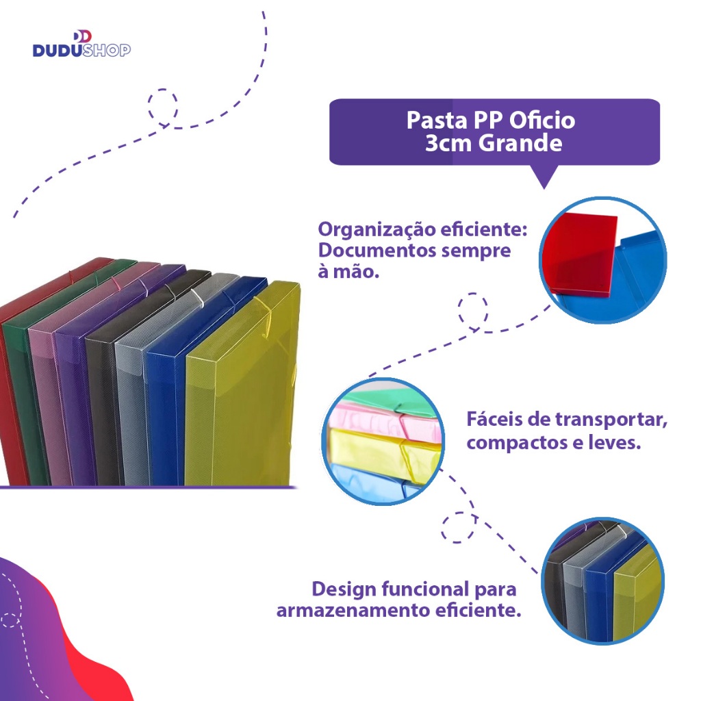 Pasta PP Oficio 3cm Grande Alta Pasta Escolar Documentos Escritório Office Pasta de Arquivos
