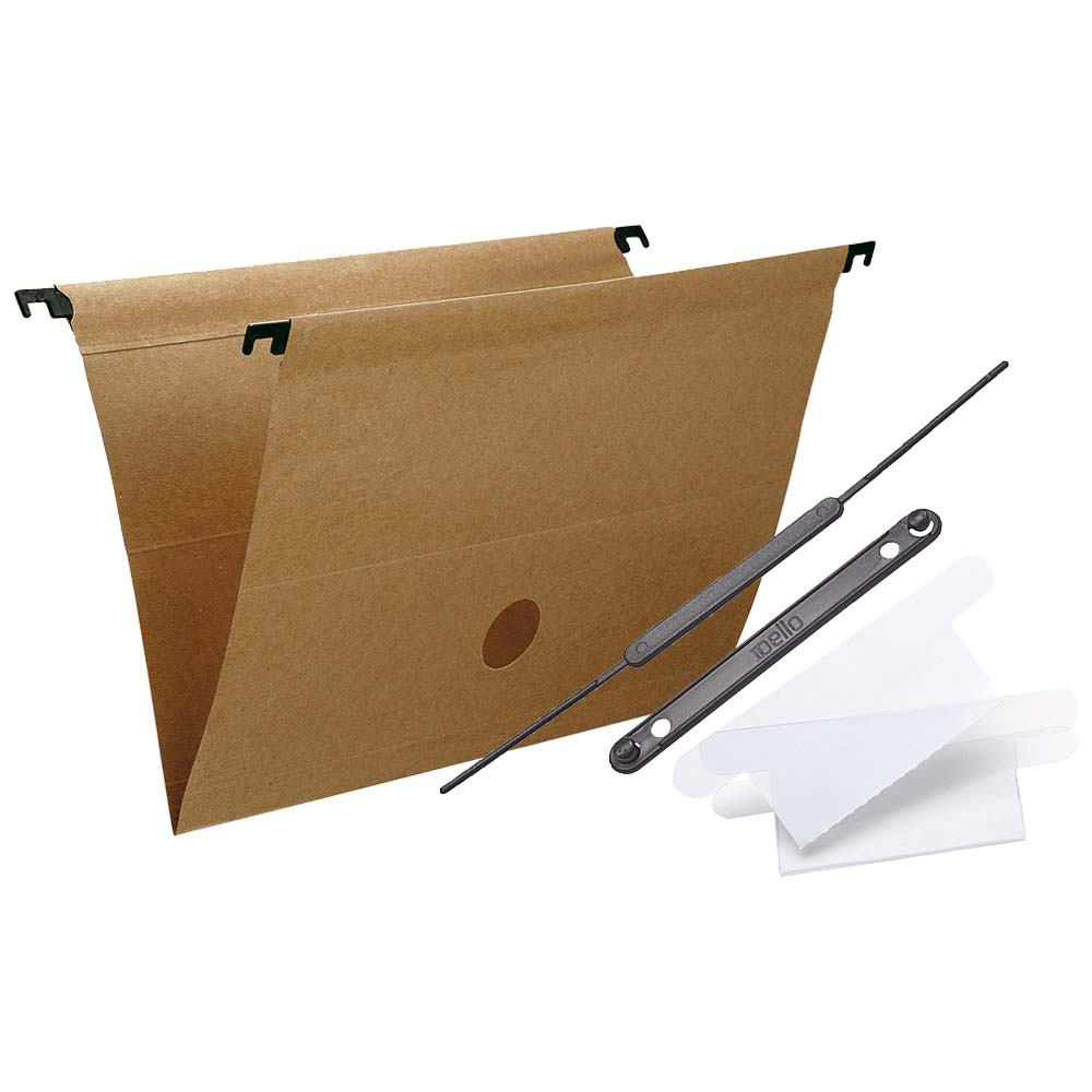 Pasta Suspensa em cartão kraft (170g/m²) Para Arquivo - Acompanha visor e etiqueta, grampo plástico e hastes plásticas removíveis. - Visor flexível em PP com espessura de 0,15mm. - Visualização de documentos e sistema de circulação de ar dentro da pasta, através de furo central. - Hastes e grampos reciclados. Produto ecologicamente correto. - Vinco marcador de páginas. Suporte para análise de documentos dentro do arquivo. - Transforma-se em mesa de apoio de documentos sobre arquivos de pastas suspensas. - Possui 2 posições para arquivo de saco plástico. Arquiva dois ou mais documentos na mesma pasta. - Possui 8 posições para grampo - Possui certificado de qualidade. - Abas coladas; - Dimensões: 36,1 × 24 Cm- Gramatura: 170 g/m² - Espessura: 0,28 - Peso: 0.057 kg Embalagem: 10 Unidades 28/11/2023 12:40:35
