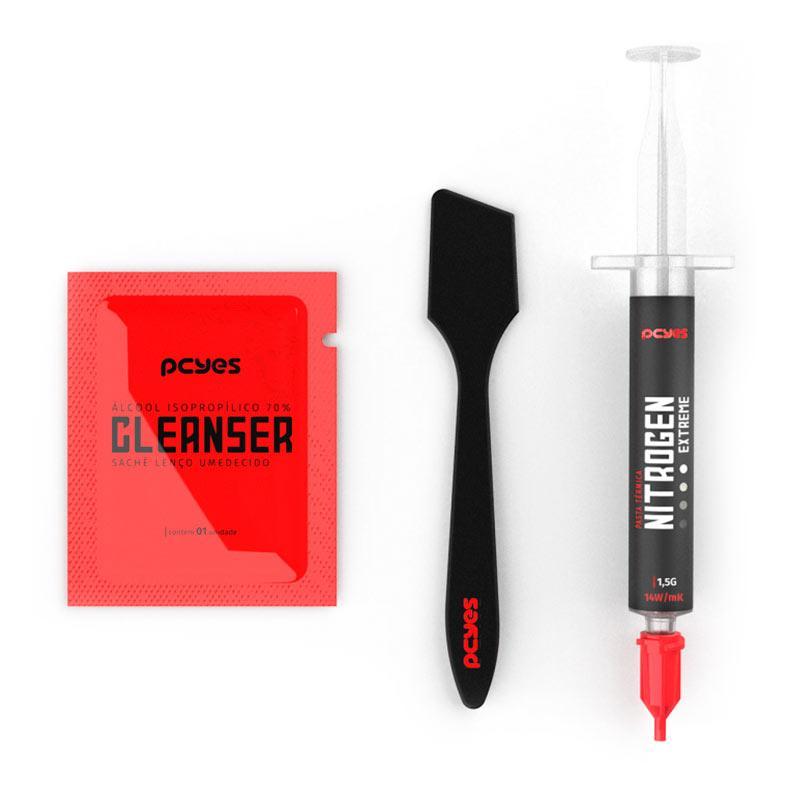 PASTA TÉRMICA PCYES NITROGEN EXTREME 5,5W/m-K de condutividade na medida certa sem deixar de oferecer qualidade e longevidade para o seu reparo. SEM RISCOS A Nitrogen oferece alta segurança para o seu circuito, sem riscos de curto. USOS DIVERSOS Podendo ser aplicado em processadores, placas de vídeo e em equipamentos eletrônicos em geral. Marca: PcYes Modelo: PCYNE1514 Conteúdo: 1,5g Cor: Cinza Condutividade térmica: 14,5W/m-K Densidade: 2,9 g/ml Impedância térmica: <0,102 °C-in²/W Temperatura de operação: -50~250 °C Composição: - Polidimetilsiloxano: 15% - Oxido de Zinco: 22% - Oxido de Alumínio: 63% Conteúdo da embalagem: - 1 x Seringa aplicadora. - 1 x Espátula. - 1 x Lenço umedecido com álcool isopropílico. Sobre a Pichau Informática: Com mais de 18 anos de atuação no mercado nacional de tecnologia, a Pichau se destaca por seu compromisso com a inovação, qualidade e a satisfação do cliente. Referência em performance e confiabilidade, a empresa segue evoluindo para entregar produtos de excelência em diversas áreas, incluindo o esporte.