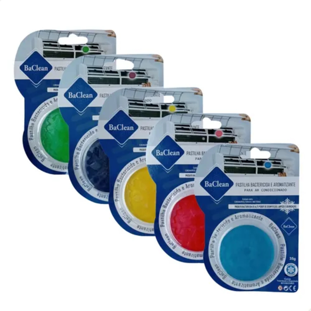 Pastilha Bactericida BaClean Aromas Sortidos Eliminador de Odores Ar Condicionado