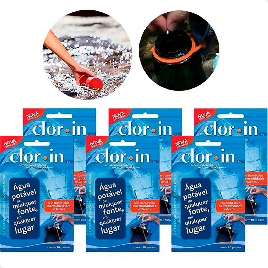 O Cloro desinfetante 1mg para 1L é um produto geralmente utilizado para tratar água de piscinas, caixas d'água ou sistemas de abastecimento. Ele vem em forma de pastilhas e é formulado para garantir a desinfecção e a manutenção da água, ajudando a eliminar bactérias e algas. Formulada a partir de um derivado clorado orgânico, cada pastilha torna potável de 500ml a 1 litro de água proveniente de qualquer fonte, como poços, riachos e mananciais, sendo ideal para o uso em camping, ecoturismo, caminhadas e atividades náuticas, militares e esportivas ao ar livre. Vantagens: - Vem em pastilhas fáceis de manusear, simplificando a aplicação. - Reduz o risco de contaminação, promovendo um ambiente saudável em piscinas e sistemas de água. - Cada pastilha é formulada para tratar uma quantidade específica de água (500ml a 1L), facilitando o controle de dosagem. - Não altera o sabor, odor ou cor da água a ser consumida. Precauções: - Não reutilizar as embalagens vazias. - Manter o produto na embalagem original. - Evite a inalação do produto concentrado. Dados Técnicos: Marca: Clorin Modelo: 6 Sachês 1mg até 1L Quantidade:10 Pastilhas Validade: 3 anos após data de fabricação Garantia: - 3 meses de garantia