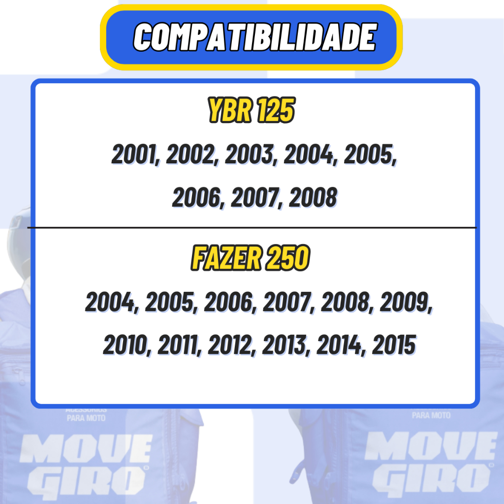 Pastilha Freio Dianteira YBR 125 (2001 A 2008) / FAZER 250 (2004 A 2015) / CB 300 (2009 A 2015 ) / TWISTER - PREMIUM APLICAÇÕES: - YBR 125 : 2001, 2002, 2003, 2004, 2005, 2006, 2007, 2008 - FAZER 250 : 2004, 2005, 2006, 2007, 2008, 2009, 2010, 2011, 2012, 2013, 2014, 2015 - CB 300 : 2009, 2010, 2011, 2012, 2013, 2014, 2015 - CBX 250 TWISTER : 2001, 2002, 2003, 2004, 2005, 2006, 2007, 2008, 2009 ✅ Honda CB 300R sem ABS – anos 2009, 2010, 2011, 2012, 2013, 2014, 2015 ✅ Honda CBX 250 Twister – anos 2001 a 2009 Características Principais: - Material de alta performance - Composto que proporciona frenagem eficiente e menor desgaste do disco de freio. - Maior durabilidade - Resistente a altas temperaturas e desgaste prolongado. - Frenagem precisa e segura - Excelente aderência para melhor controle da moto. - Instalação simples - Substituição rápida e prática sem necessidade de adaptações.