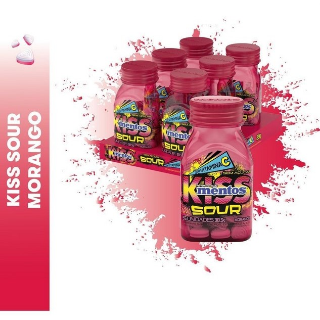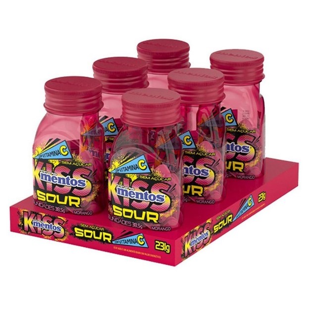 | Pastilha Mentos Kiss Sour Morango Van Melle Com 6 Unidades De 38,5g este produto | R$ 23,99 | 49% | 5.0/5 | — |