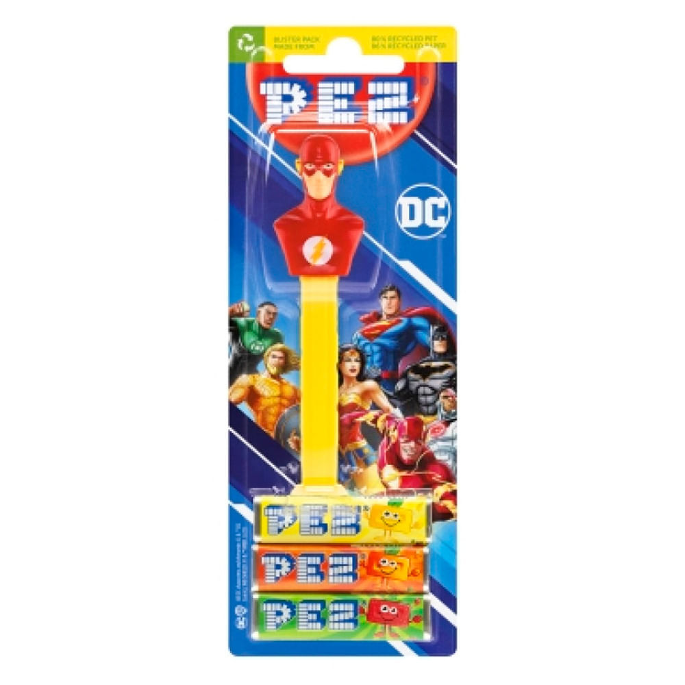 Pastilha Pez Heróis DC com Dispenser Contém: 1 Dispenser de Personagens e Cores Sortidos 3 Pastilhas de 8,5g cada Sabores Sortidos