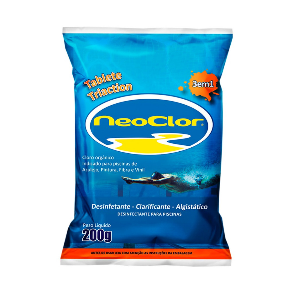 PASTILHA DE CLORO 3 EM 1 Pastilha 3 em 1, desinfetante, algistático e clarificante. Cloro orgânico estabilizado, poderoso desinfetante para águas de piscinas. Faz cloração contínua e automática pôr 7 a 14 dias com apenas uma aplicação, quando utilizado em cloradores flutuantes. Pode ser usado, sem restrições, em piscinas de fibra e vinil, pintura ou azulejos desde que sejam usadas em cloradores ou flutuadores. DIFERENCIAIS -Produto 3 em 1, com efeito do cloro (sanitizante), clarificante e algistático; -Com estabilizante de pH e alcalinidade; -Ideal para baixa temporada. Também pode ser usado em cisternas de água de chuva não potável.
