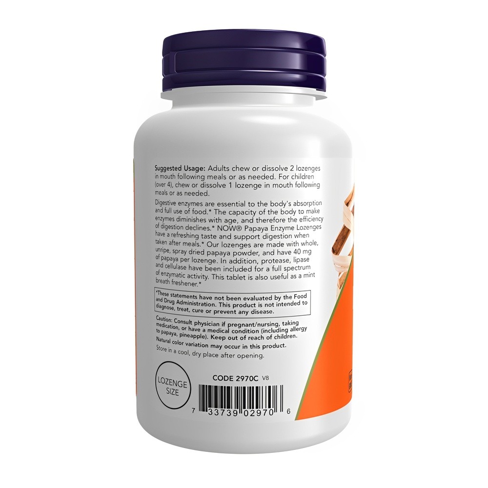 Pastilhas Enzima Mamão Now Foods 180 Past Importado