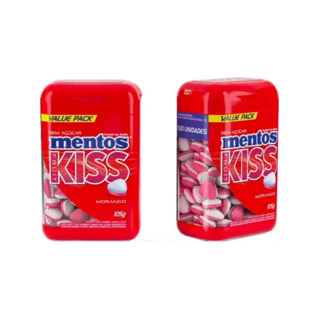 | Pastilhas Mentos sem açúcar pote com 150 un Kiss Morango este produto | R$ 36,79 | — | 4.9/5 | — |