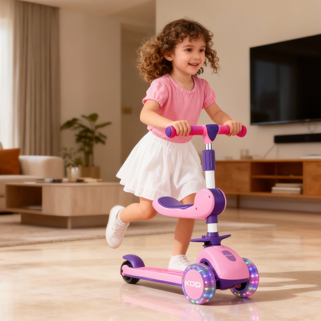 Patinete 3 em 1 para 1 a 12 Anos Com Banco, Luzes e Música Ajustável e Seguro 60KG P15