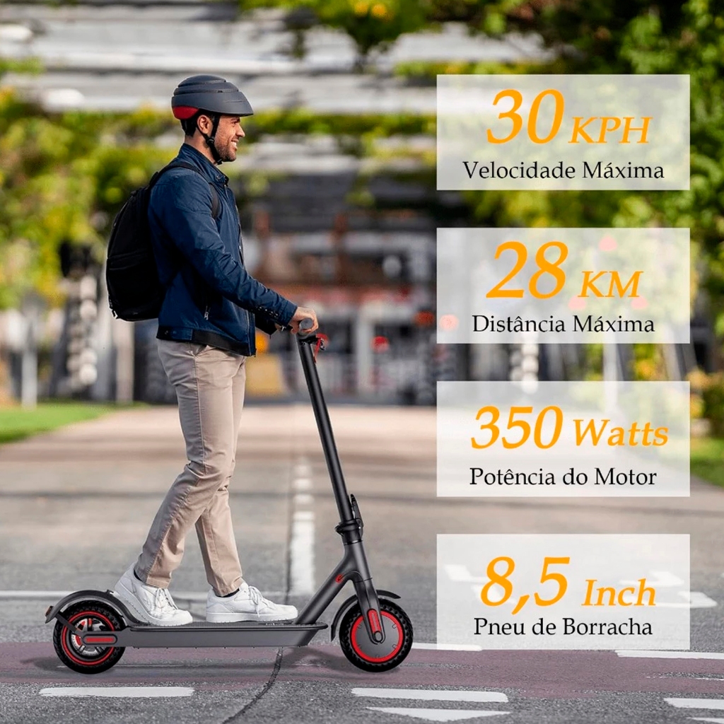 Patinete Elétrico Dobrável Para Adultos 350W Bivolt 36V 30Km/h Percorre Até 25Km