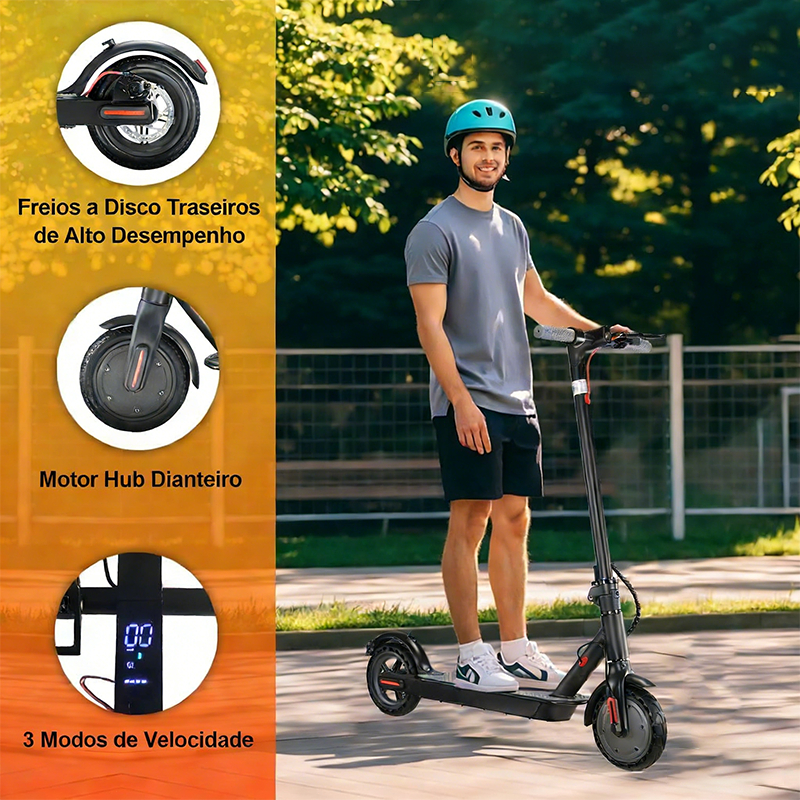 Patinete Elétrico Profissional 350W - Suporta 150kg, Rodando 30km - Velocidade 25km/h -V6