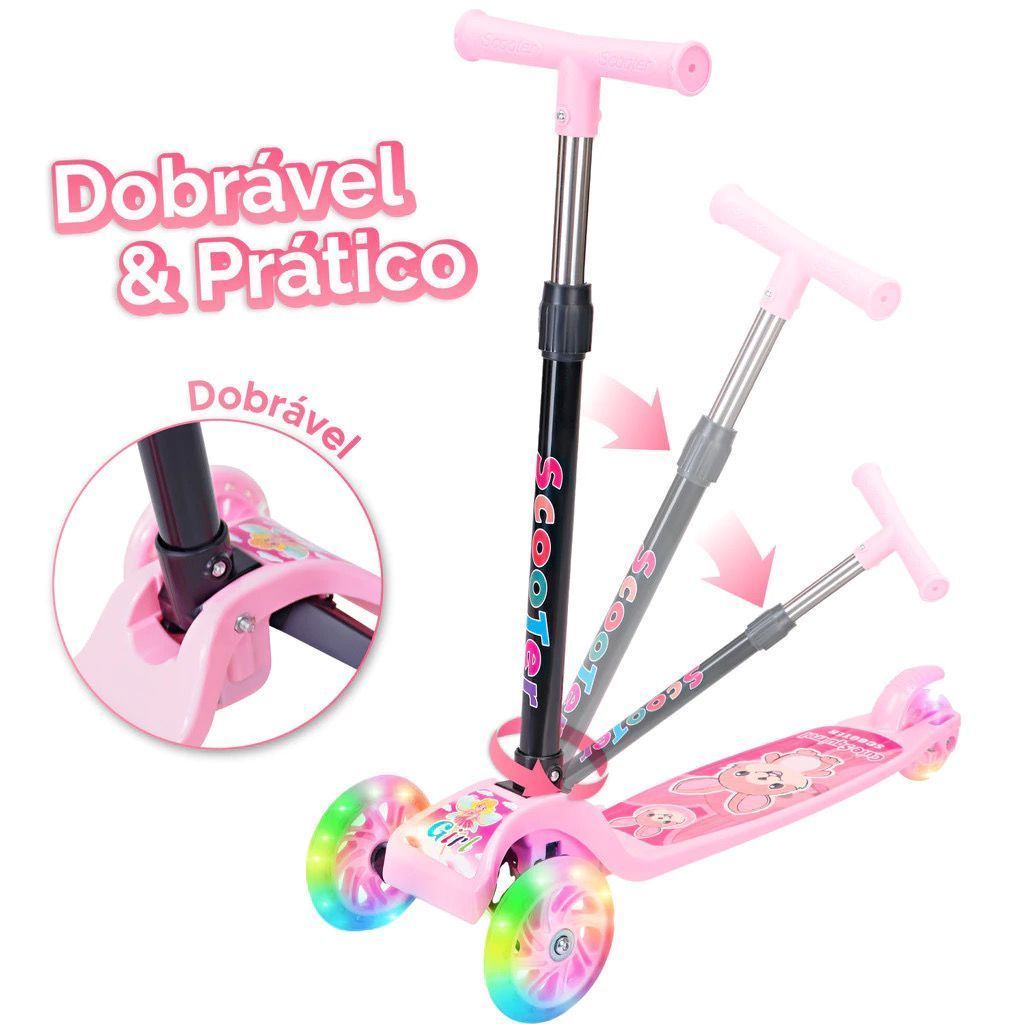 Patinete Infantil 3 Rodas De Led Dobrável Scooter Crianças--1715