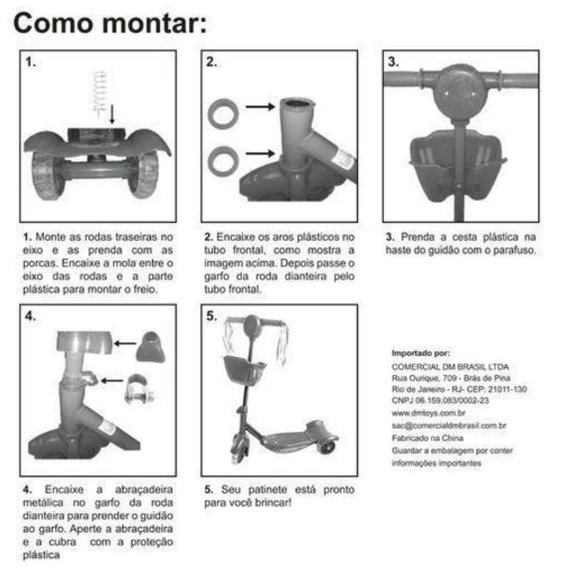 CONTEÚDO DA EMBALAGEM: FOTO REAL DO PATINETE * 01 Patinete Infantil Personagens (tema escolhido) musical * Cesta * Luz * Som * 03 Rodas de Silicone (NÃO TEM LUZ NAS RODAS) * Guidão Regulável: 60 CM ATÉ 70 CM DE ALTURA * Recomendado para crianças de 2 a 6 anos * Suporta até 35 kg * Material: Ferro, Plástico * Freio duplo traseiro * Medidas Aproximadas: 32 cm Comprimento X 15 cm de Largura X 70 cm Altura * Material: Ferro, Plástico PRODUTO A PRONTA ENTREGA! 📢 ATENÇÃO: Não tem como escolher o design: ⚠️ É aleatório o design do desenho do patinete ⚠️