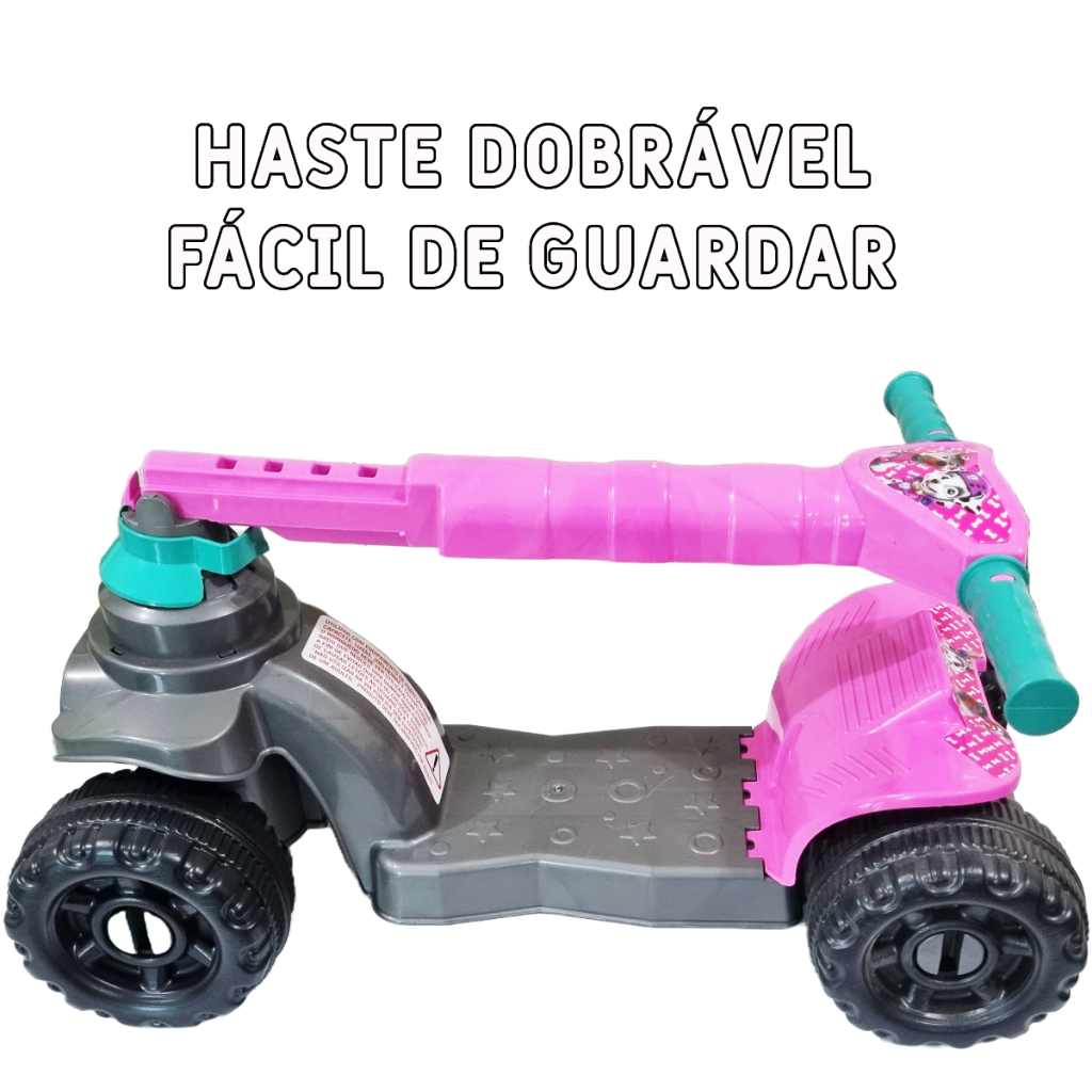 Patinete Infantil 4 rodas Menina Rosa - 2 a 5 anos - 64cm Altura - 4 Regulagens Altura - Dobrável - Certificado Inmetro