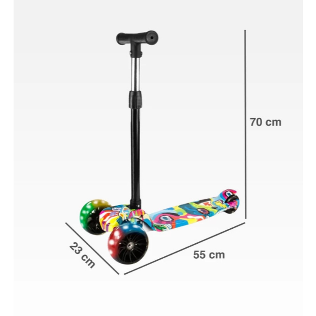 Este anúncio contém: ✔️ 1 Scooter Infantil 3 Rodas LED Dobráveis InfantisAs rodas possuem luzes LED que se acendem durante o movimento ⚠️ Selecione a cor desejada no momento da compra. ⚠️ ⚫️ Características:(modelo m1-m7) ✔️ Material: aço e plástico ✔️ Material do convés: plástico ✔️ Material da roda: PVC ✔️ Tamanho da roda dianteira: 110 mm ✔️ Tamanho da roda traseira: 74mm ✔️ Rolamento: ABEC 7 ✔️ Número de rodas: 3 ✔️ Montagem necessária: Sim ✔️ Haste ajustável: Sim ✔️ Tipo de freio: freio traseiro ✔️ Idade mínima recomendada: 3 anos - 8 anos ✔️ Peso máximo: 55kg ⚫️Dimensões aproximadas: DIMENSÕES DO PRODUTO ABERTO: ✔️ 71 x 26 x 66 cm DIMENSÕES DO PRODUTO FECHADO: ✔️ 10 x 26 x 68 cm; Diâmetro Rodas: 110mm Largura Rodas: 50mm modelo P601 altura : 68-71-75cm (ajustavel) comprimento: 58cm largura:25cm