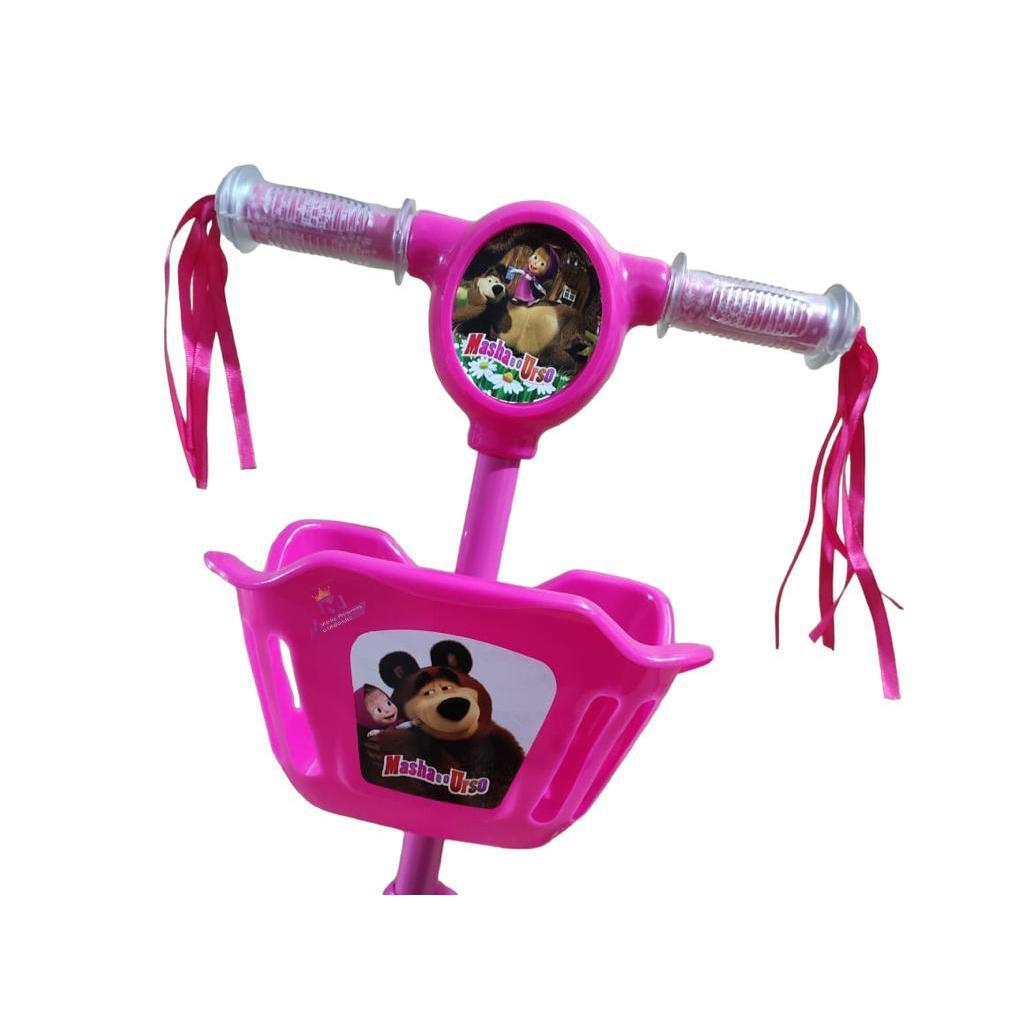 Patinete Infantil Masha e o Urso Musical Cesta Luzes 3 Rodas