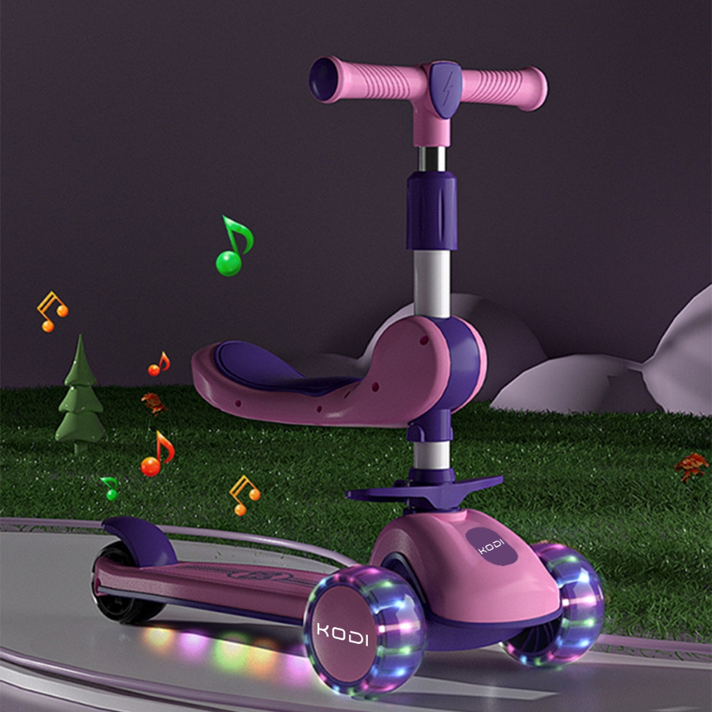 Patinete Infantil Musical 3 Rodas De Led Dobrável e Guidão Ajustável até 60Kg Menino Menina P15
