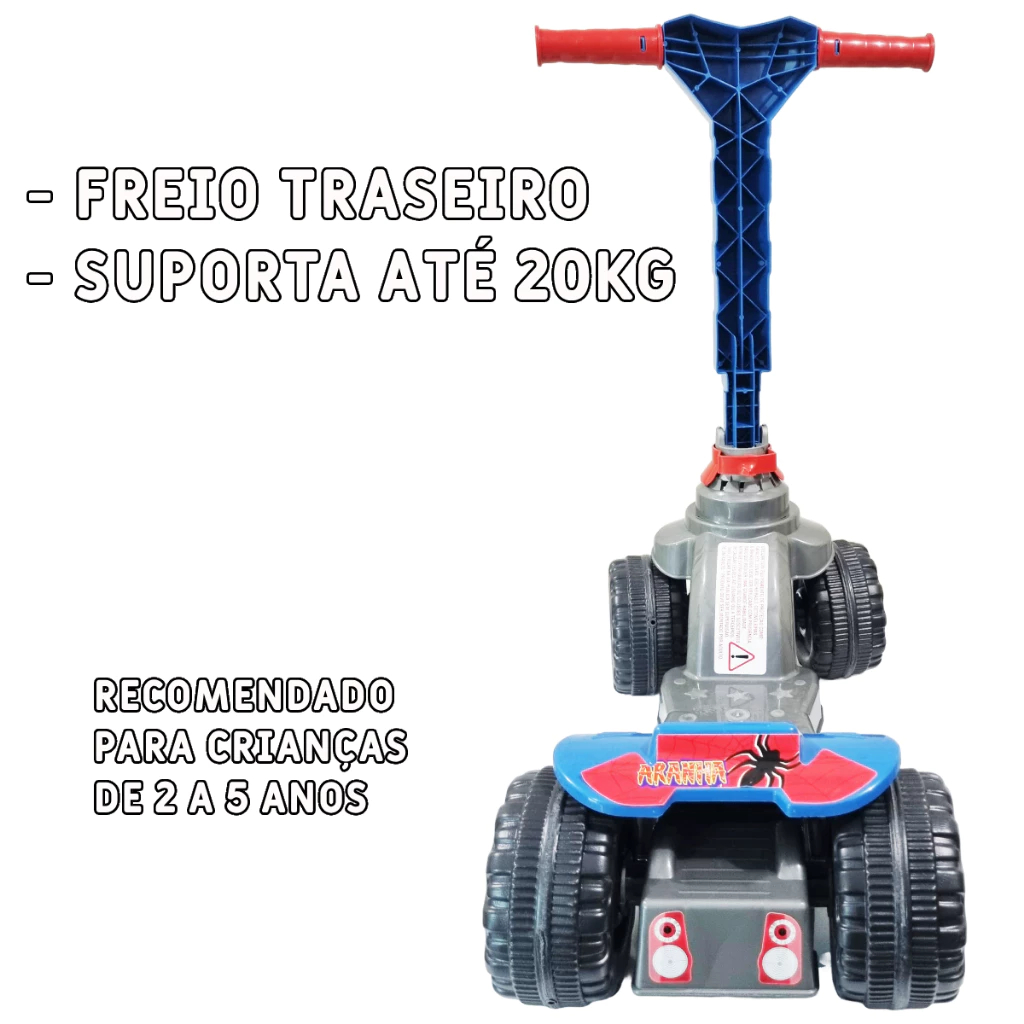 Patinete 🛴 Menino 4 rodas Spider 🕸️ 🕷️- 2 a 5 anos - 4 Regulagens Altura - Dobrável - Inmetro - QUEEN SHOP