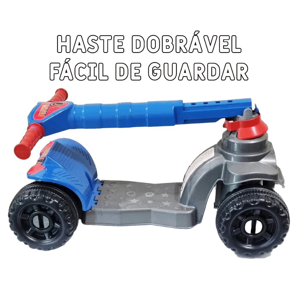 Patinete 🛴 Menino 4 rodas Spider 🕸️ Aranha - 2 a 5 anos - 4 Alturas Dobrável - Inmetro - QUEEN SHOP