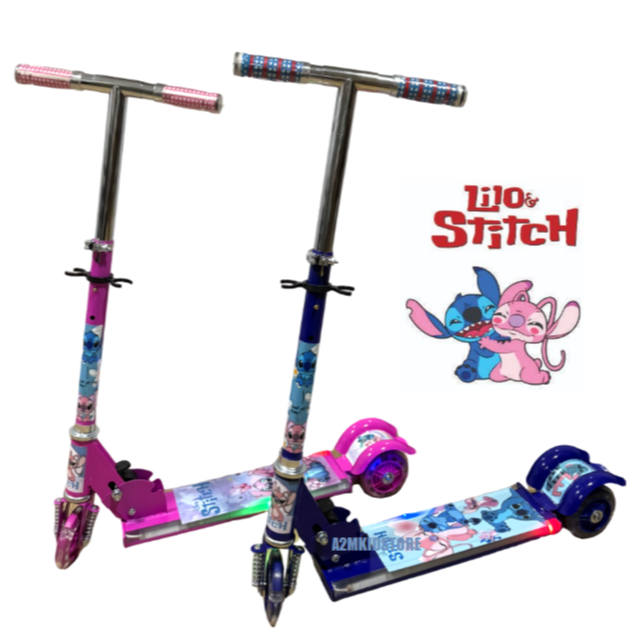 Patinete Musical Azul Rosa Metal Infantil Homem Aranha Frozen Música Led 3 Rodas e Laterais Buzina