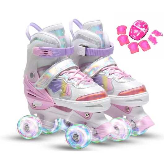 Patins 4 Rodas Com Led Patins Infantil Menina + Kit Proteção Borboleta