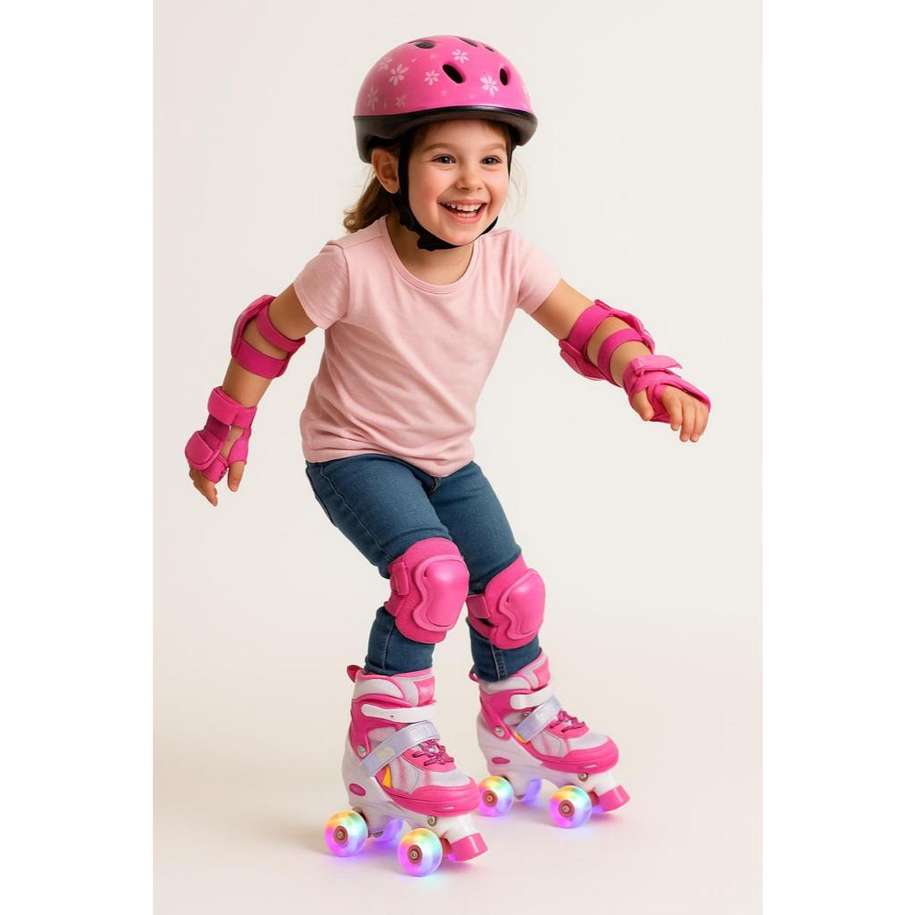 Patins Arco Íris Rosa/Rosa Infantil 4 Rodas Sports Regulável luz de LED Com/Sem Kit Segurança