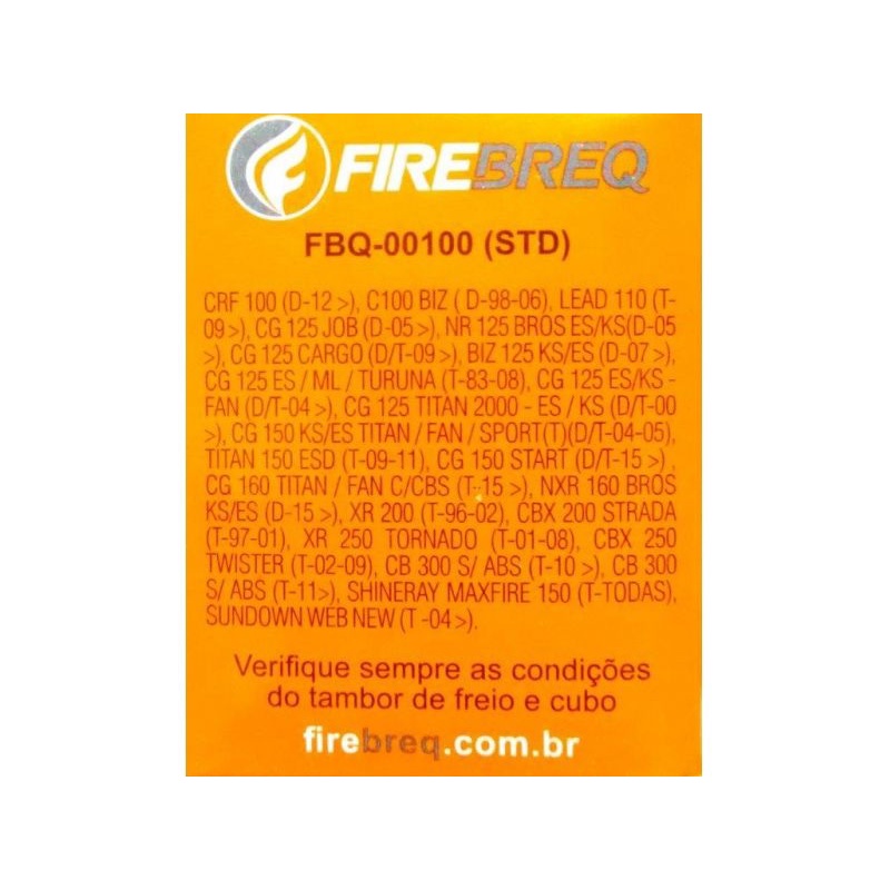 PATINS DE FREIO DE EXCELENTE QUALIDADE! Com baixo teor de materiais ferrosos e totalmente isentos de amianto, os produtos Firebreq são ecologicamente corretos, com alto poder de frenagem e baixo desgaste do cubo, proporcionando segurança e conforto aos clientes. ITENS NOVOS E ORIGINAIS DA MARCA FIREBREQ > Código do Fabricante: FBQ-00100 STD > Garantia contra defeitos de fabricação. PRINCIPAIS APLICAÇÕES: TITAN 2000 ES (T) KS (D/T) BIZ (D) TWISTER TORNADO (T) BROS 125 (D) TITAN 125 KS KSE (D/T) ES (T) TITAN 150 KS (D/T) ESD (T) Lead 110 (T) ENVIAMOS EM 24 HORAS ÚTEIS!! Qualquer dúvida é só chamar no chat que iremos te responder o quanto antes.