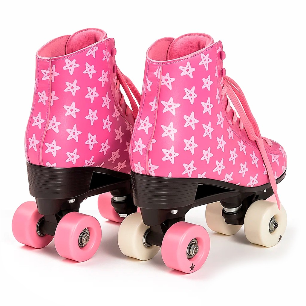 Patins Infantil 4 Rodas Estrela Rosa Menina Ajustável Retrô Freio Dianteiro - Dm Toys