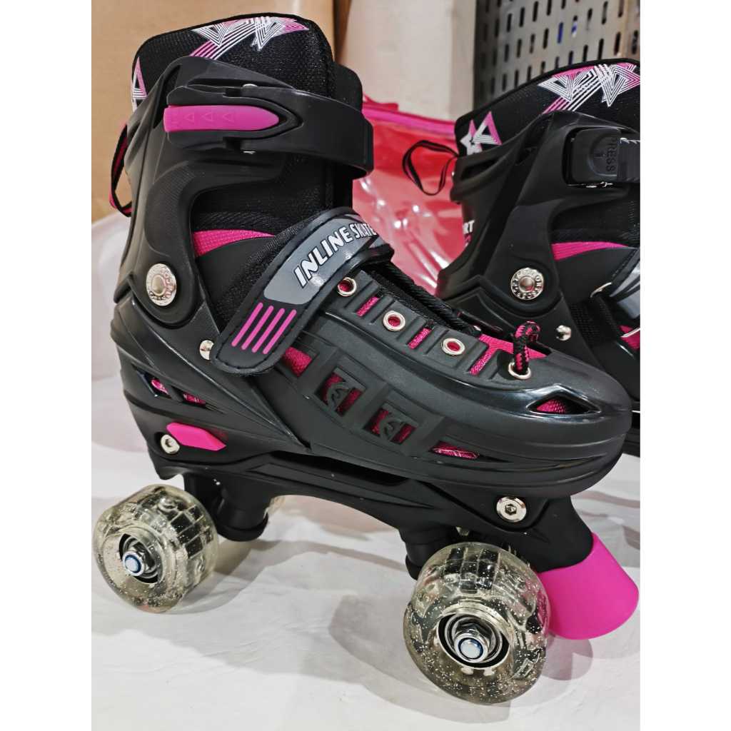 ###### importante em caso de devolução não utilizar o produto ###### Patins Lançamento preto e rosa com led. Buscando um Patins que tenha um diferencial e te surpreenda trazendo Segurança, alegria e felicidade para quem você ama e ainda assim seja de qualidade e bonito? Características Modelo: Patins 4 Rodas preto e rosa Com Led Patins: patins Quad Tradicional ajustável Ajuste: ajustavel cadarço - velcro Freio: Frontal ambos os pés kit proteção: capacete - joelheira - cotoveleira - munhequeira Tamanho: S / M / L Patins importado, numeração equivale a de calçados fechados. DUVIDAS COMUNIQUE O VENDEDOR