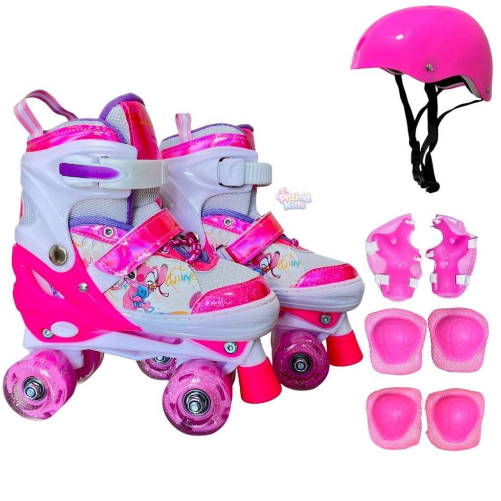 Patins Infantil Quad Stitch Tamanho Ajustável Regulável Rodinhas Com LED + KIT DE PROTEÇÃO COMPLETO