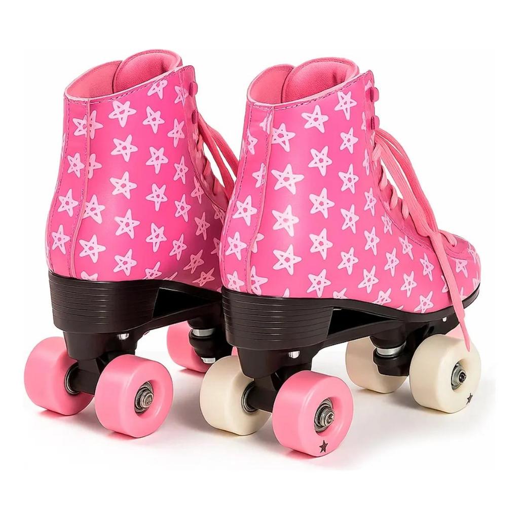 Patins Infantil Stars Rosa Retrô Quad Acolchoado Regulável Tamanho 35