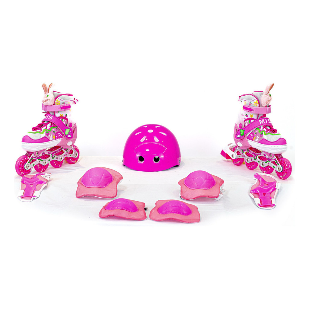 Patins inline infantil ajustável com luzes LED, com ou sem kit de proteção, em várias cores e tamanhos disponiveis
