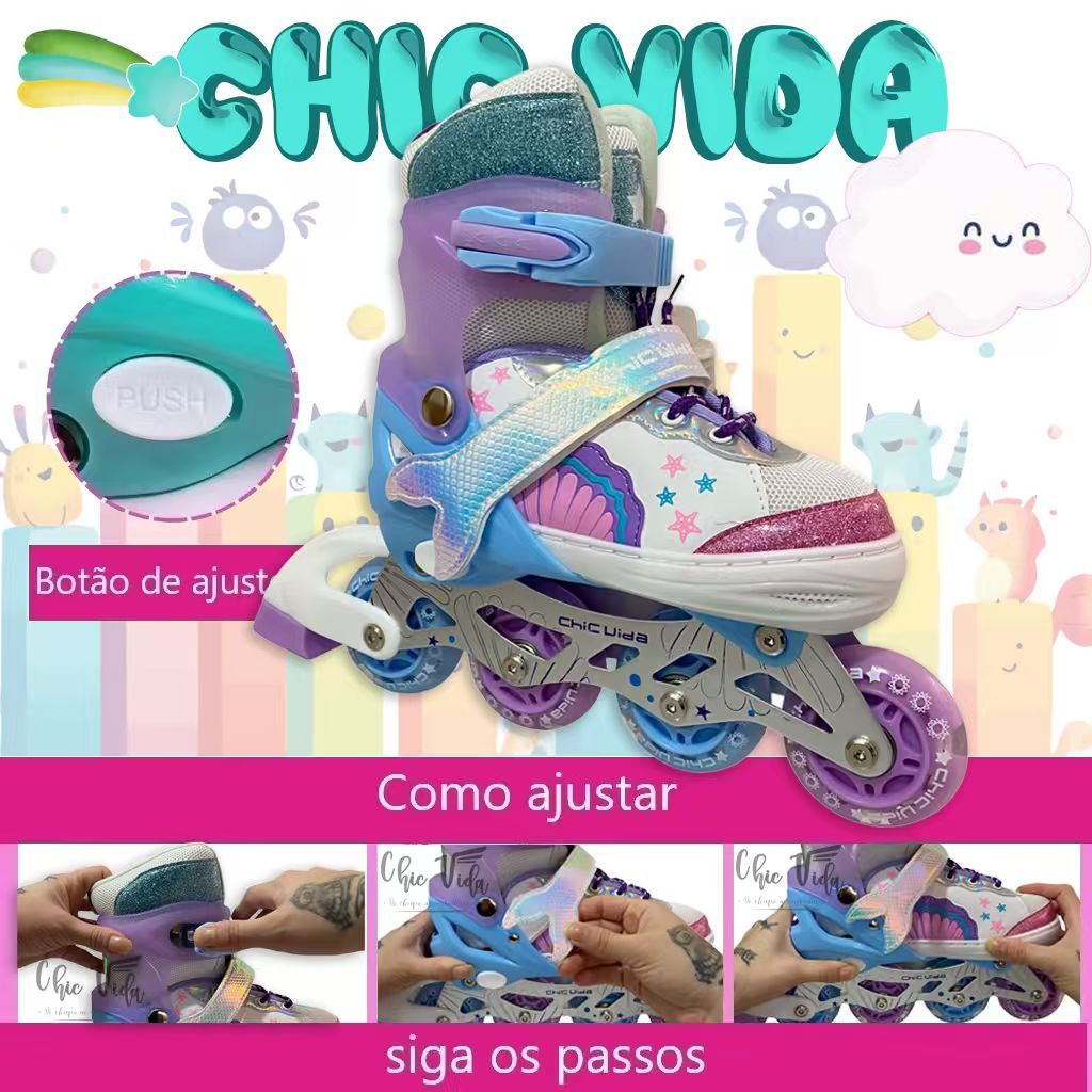 ⚠️ Existem duas opções disponíveis: Somente o ''Patins (inline)'’ porque ''NÃO'' acompanha proteção, e ‘'Patins (inline) + Proteção'’ porque acompanha ''COM'' proteção ⚠️ 【mercadoria esta no brasil】 ENVIO PARA TODO O BRASIL❗️❗️❗️ 📢 ATENÇÃO: o ''PATINS INLINE'' só acompanha somente ''UM FREIO'' 📢 Patins (inline) ''COM LED'' somente uma roda da frente se for as ''rodas preto, vermelho ou rosa no anuncio'' ou Patins inline com ''rodas bem coloridos com modelo de desenhos diferentes'' que é ''COM LED'' nas 4 rodas reto. A criançada vai adorar brincar e desenvolver seus movimentos e se divertir muito. Os patins Inline garantirão diversão, lazer e muitas aventuras! Super fácil e prático para quem procura iniciar no mundo dos patins, ou até mesmo, para aqueles que já dominam o esporte e que buscam desempenho. Patins com linhas e design modernos, com a qualidade e tecnologia da modernidade. São resistentes, fáceis de usar e calçar, contam com botas confortáveis e macias, as quais garantem o melhor conforto para os pés durante o passeio. Fabricados com materiais de qualidade, estrutura reforçada, e um freio traseiro direito, tudo para garantir total segurança na hora das atividades e exercícios com muita diversão. Ainda conta com Led nas 4 rodas coloridas se for o patins mais ''coloridos'', ou temos o patins com ''rodas preto, vermelho ou rosa'' que é somente uma led na roda da frete, o que deixa este Patins ainda mais incrível também. 🔊 Para escolher tamanhos e cores diferentes basta inserir individualmente cada cor com seu respectivo tamanho no carrinho, e após isso finalizar a compra. ⚫️Conteúdo da Embalagem: ✅ Par de Patins inline ✅ Chave Allen para manutenção ✅ Bolsa para Transporte ⚫️ Características ✅ Modelo: Patins (inline) ''COM LED'' somente uma roda da frente se for as ''rodas preto, vermelho ou rosa no anuncio'' ou Patins inline com ''rodas bem coloridos com modelo de desenhos diferentes'' que é ''COM LED'' nas 4 rodas reto ✅ Ajuste: ajustável cadarço ✅ Freio: Frontal ambos os pés ✅ Tamanho: S / M / L ✅ ''Botão'' lateral de ajuste para regular o tamanho do patins conforme o crescimento da criança 📢 OBSERVAÇÕES: Patins importado, numeração equivale a de calçados fechados. Para qualquer tipo de devolução o produto ''NÃO'' pode ter sido usado.