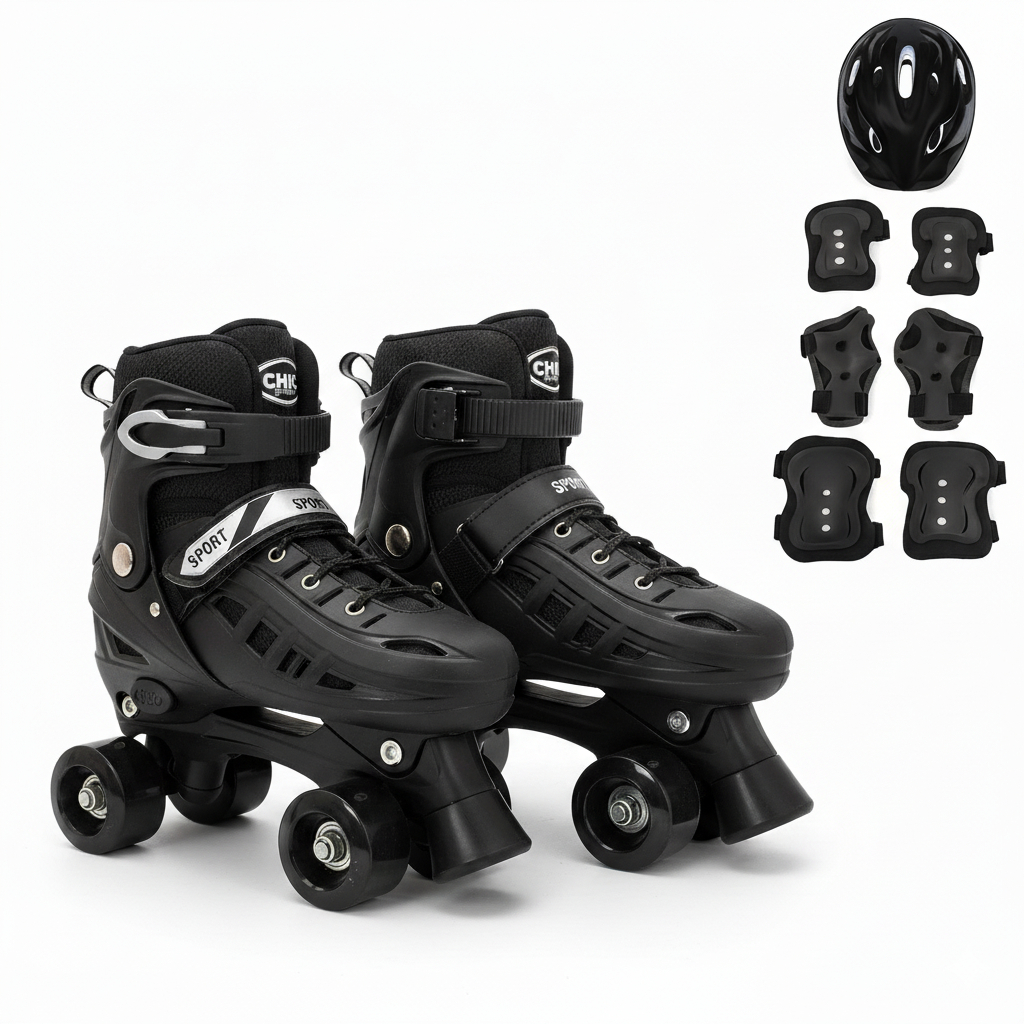 Patins Quad 4 Rodas Infantil Tamanho Ajustável + KIT PROTEÇÃO