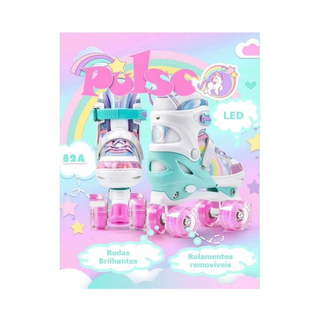 Patins ROLLER infantis arco-íris de 4 rodas com luzes LED e piscantes, modelo PREMIUM