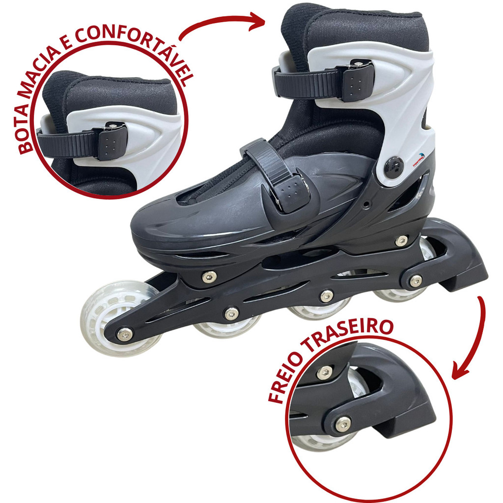 Patins Roller Inline Ajustável Preto Com Tamanho Ajustavel 39 a 42 Importway