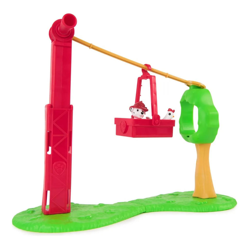 No alto de um campo verde e tranquilo, Marshall embarca em mais uma aventura de resgate. Inspirado no universo vibrante da Patrulha Canina, o conjunto traz um mini teleférico vermelho com cesto móvel que percorre um trilho suspenso, criando uma experiência divertida e cheia de imaginação. A árvore, o gramado e o cesto adicional ajudam a compor um cenário lúdico e interativo. Com seu chapéu vermelho e olhar curioso, Marshall está pronto para deslizar pelos ares em um dia ensolarado repleto de descobertas e alegria. Garantia de fábrica: 3 meses