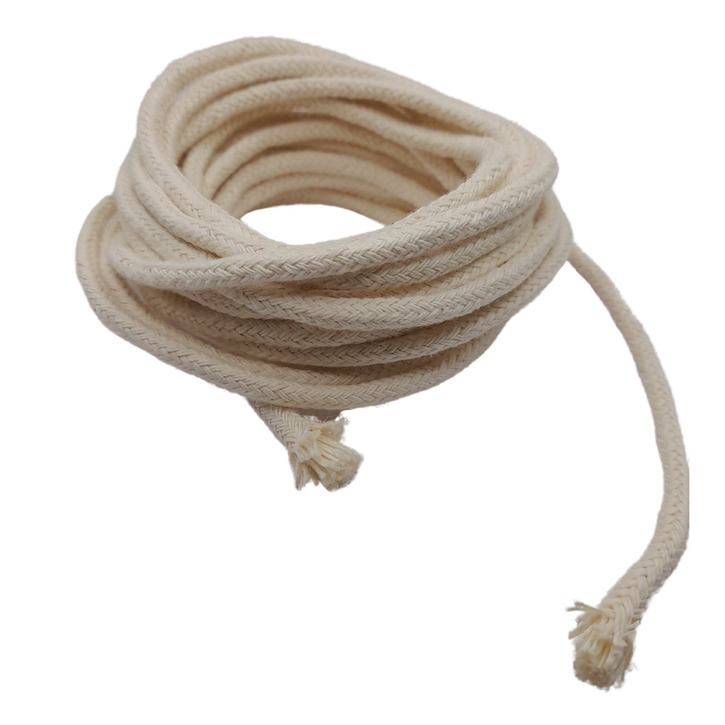 Pavio para Lamparina Tocha Lampião Algodão 5mm com 10 Metros Barbante de algodão trançado 5mm Natural algodão cru Espessura 5 mm Utilização: Lamparina, Tocha, Lampião. Material 100% fibra de algodão Produto natural, biodegradável, resistente, resiliente, reutilizável, robusto, flexível, rústico, fácil aplicação Tipo Encordoamento: Trançado Restrições: Teme umidade