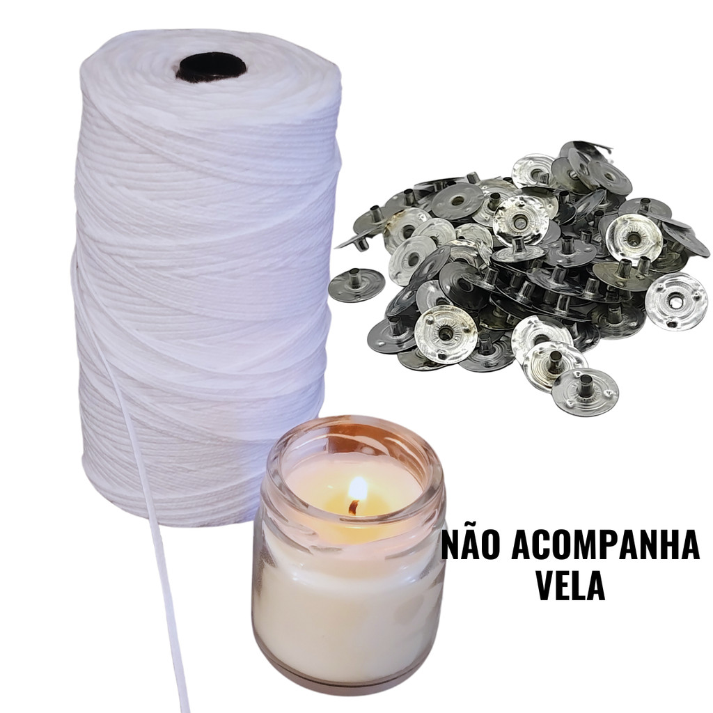 PAVIO PARA VELAS TRANÇADO 100% ALGODÃO DE 1MM A2020 SÃO VITOR COM 50 ILHOS 2MM Feito de Algodão cru, trançado e não encerado. PAVIO Funciona com qualquer tipo de cera como parafina, de coco, soja, cera de abelha etc. PAVIO indicado para velas pequenas, potinhos de vidro redondo, quadrado, para lembrancinhas de chá de bebê, casamentos, aniversários, Etc. Quando acesa, produz chama forte e uniforme que dança suavemente, criando uma atmosfera acolhedora e relaxante. É importante escolher um pavio de qualidade para a sua vela, a fim de garantir uma queima uniforme e segura. FICHA TÉCNICA: MARCA: São Vitor COMPOSIÇÃO : 100% Puro Algodão. TAMANHO: Fino. DIÂMETRO FIO: 1mm. DIÂMETRO DE QUEIMA: MÉDIA 5cm* *O diâmetro de queima pode variar com diferentes tipos de ceras e parafinas bem como com a adição de essências e corantes. É sempre importante fazer um teste de queima para que você tenha o pavio certo para sua vela. 50 Ilhós Para Velas O ilhós fixa o pavio na vela e evita a propagação do fogo quando a mesma estiver no fim; Faz com que a Vela queime por completo até o final. Prevenção contra incêndios; Aplicação para os pavios de até 2mm. Dica: Use um alicate para pressionar e prender o ilhós no pavio. Largura: 1,5 cm Tamanho do Furo: 2mm