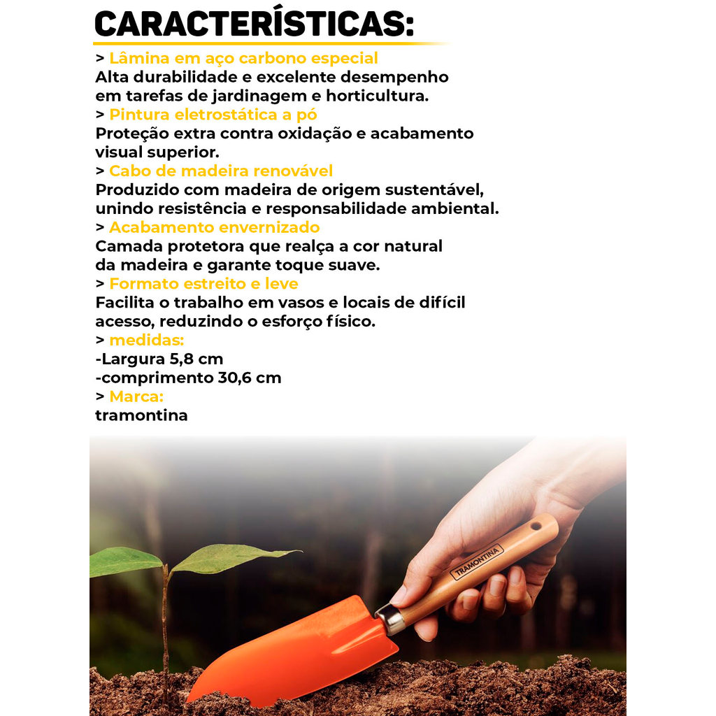 Pazinha Estreita Metálica Tramontina Cabo De Madeira P/ Jardinagem Horta E Vasos De Plantas