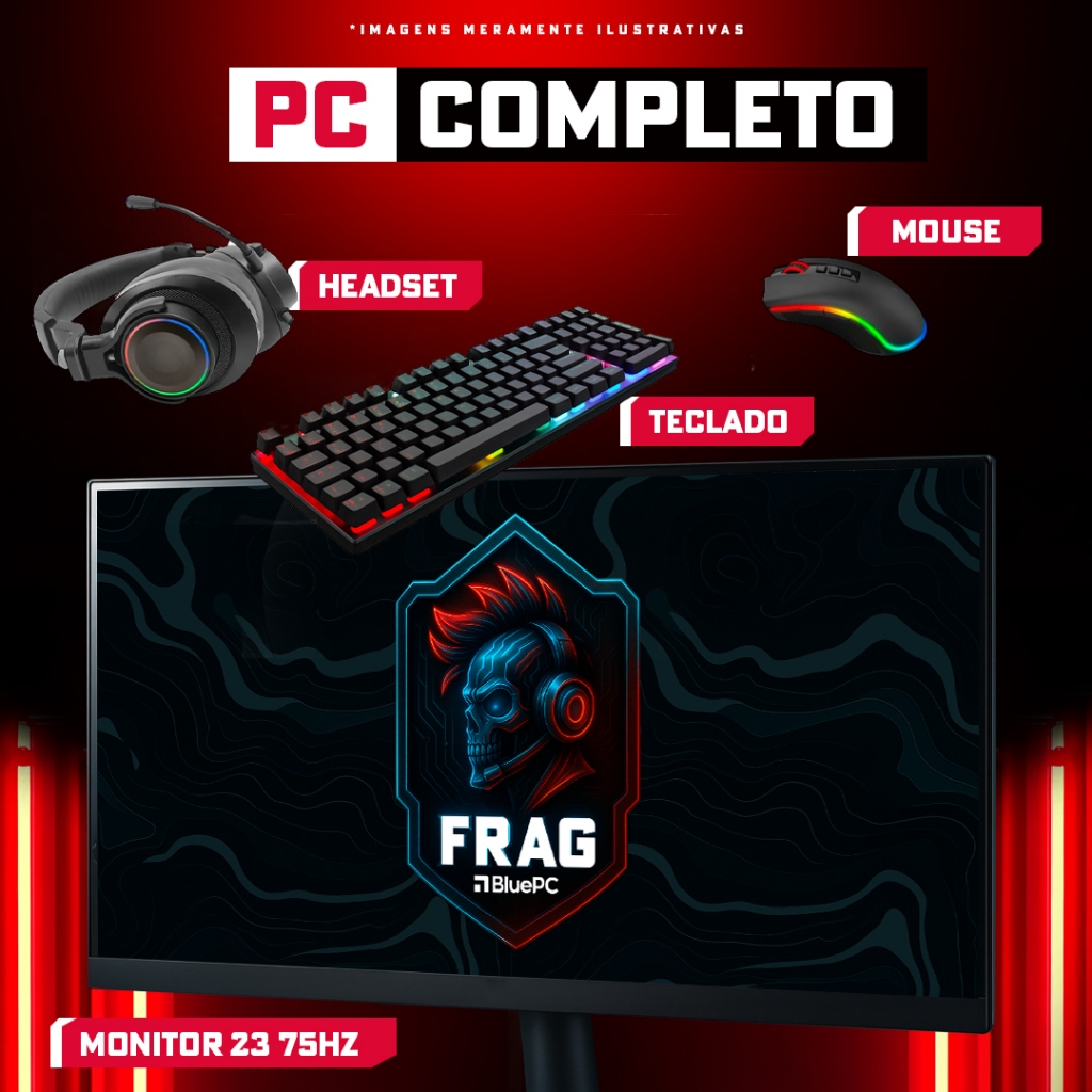 ::: PC Gamer BluePC FRAG ::: ::: O MAIOR E MELHOR CUSTO BENEFÍCIO DA CATEGORIA ::: Se você está em busca de um PC Gamer que caiba no seu bolso, e te permita jogar com competitividade os títulos mais famosos, essa é a opção ideal para você. Equipado com uma placa de vídeo AMD RX 6600 de 8GB GDDR6, 16GB de memória RAM, armazenamento ultra veloz com SSD PCIe NVMe, fonte de alimentação com certificação 80 Plus, e claro, um processador multi-core e multi-threads, você estará pronto para qualquer desafio! Além disso, você conta com um produto de design moderno e construído com componentes de alta qualidade. ::: DESEMPENHO CONFIÁVEL ::: Os seus jogos favoritos com estabilidade e fluidez. Este PC Gamer foi testado e aprovado em diversos títulos como: - Counter Strike 2 - PUBG: Battlegrounds - Fortnite - Call of Duty (Modern Warfare/Warzone/Black Ops) - Apex Legends - Cyberpunk 2077 - Red Dead Redemption 2 - Overwatch 2 - Grand Theft Auto V (GTA V) - Forza Horizon 5 - Rainbow Six Siege Dentre outros! ::: AMD RX 6600 8GB ::: Essa placa de vídeo é a mais querida da atualidade quando o assunto é alta performance com preço justo. Ela irá te surpreender com o desempenho entregue durante a sua jogatina. Isso é possível graças as suas especificações técnicas: - Desenvolvedor: AMD - Linha: Radeon - Série: RX - Modelo: RX 6600 - Memória gráfica: 8GB GDDR6 - Saídas de vídeo: HDMI e Display Port - Suporta múltiplas telas: Sim - Refrigeração: Dual Fan - Conexão: PCI Express - Resoluções suportadas: HD, Full HD, 2K e 4K - Tecnologias compatíveis: AMD FreeSync, DirectX 12, OpenGL, AMD CrossFire, Vulkan API, AMD FSR Vamos agora aos detalhes do restante dos componentes: ::: PROCESSADOR ::: - Desenvolvedor: AMD - Plataforma: AM4 - Arquitetura: Zen 3 - Série: Ryzen 5 - Modelo: 5500 - Clock: 4.20Ghz - Núcleos: 6 - Threads: 12 - CPU Boost: Sim - Lanes PCI Express: 24 ::: PLACA MÃE ::: - Desenvolvedor: AMD - Chipset: B450 - Slot para placa de vídeo: PCI Express x16 - Slot para placas diversas: PCI Express - Capacidade máxima de memória RAM: 64GB - Portas USB: 2x Tipo A Geração 3 + 4x Tipo A Geração 2 - Suporte a processadores: Toda linha AMD AM4 Ryzen 3,5,7, e 9 - Rede: LAN Gigabit 10/100/1000 RJ45 - Slots para armazenamento: M.2 PCIe NVMe + 4x SATA 6GB/s - Áudio: HD multicanais com 3 conexões ::: MEMÓRIA RAM ::: - Tecnologia: - Capacidade instalada: 16GB ::: ARMAZENAMENTO ::: - Tipo: SSD - Conexão: M.2 - Tecnologia: PCIe NVMe - Capacidade instalada: 512GB ::: GABINETE ::: - Tipo: Gamer - Formato: Mid Tower - Conexões: 2x Áudio e 2x USB - Tipo de vidro: Temperado - Tipo de metal: Aço e alumínio - PSU Cover: Sim - Sistema de refrigeração: 3x Fans LED RGB de 120x120mm ::: FONTE DE ALIMENTAÇÃO ::: - Tipo: Gamer - Formato: ATX - Certificação: 80 Plus - Voltagem: Bivolt automático - Potência: 500W ::: ACESSÓRIOS ::: - Mouse Gamer RGB ambidestro: Com fio USB - Teclado Gamer RGB padrão ABNT2: Com fio USB - Headset Gamer RGB 7.1 canais simulado: Com fio USB ::: MONITOR ::: - Tipo de tela: LED - Tamanho da tela: 23" - Taxa de atualização: 75Hz - Resolução: Full HD - Proporção da tela: 16:9 Widescreen - Conexão: HDMI - Brilho: 220cd/m³ - Tipo de contraste: Alto - Cores: 16.7 milhões - VESA: Sim ::: SISTEMA OPERACIONAL ::: - Desenvolvedor: Microsoft - Sistema: Windows - Versão Windows 11 Pro - Tipo de licença: Trial Observações: 1- Os jogos citados nas imagens e neste texto não acompanham o produto. 2- As imagens são meramente ilustrativas. 3- O sistema operacional instalado possui licença trial. 4- Pequenas mudanças podem ocorrer no design do produto de acordo com o nosso estoque momentâneo. 5- O desempenho em FPS nos jogos citados irá depender do preset gráfico configurado pelo usuário.