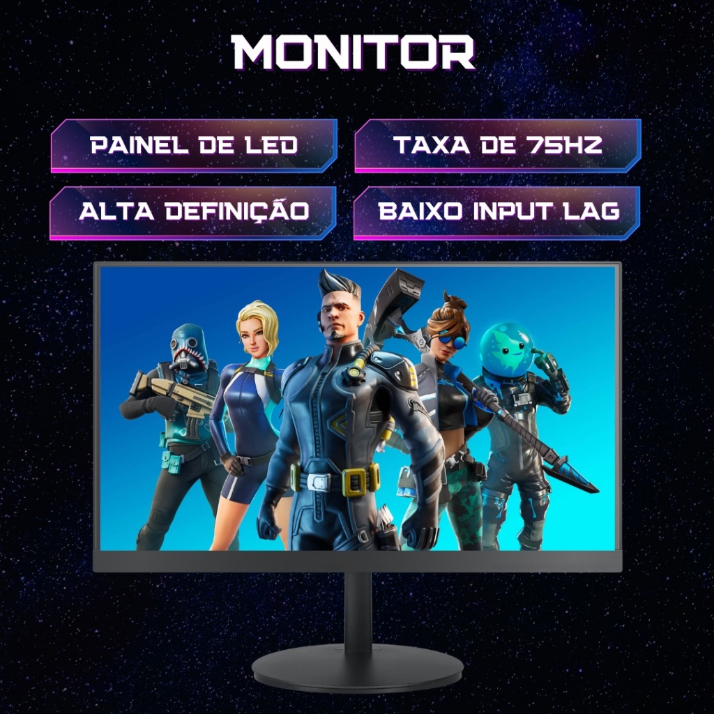 O SEU PASSAPORTE DE ENTRADA NO UNVIVERSO GAMER! Uma solução completa, pronta para rodar os jogos mais famosos do momento em alta performance a um preço justo. Basta conectar o seu PC Gamer 2Eletro Shot na energia elétrica e iniciar a jogatina. Você receberá um computador montado por especialistas, com sistema operacional instalado, além drivers e bios atualizadas. Isso garantirá fluidez e estabilidade durante as suas longas jornadas. Jogue títulos como Fortnite, Counter Strike, GTA V, Overwatch2, Valorant, Minecraft, League of Legends, Dota 2, e muitos outros, sem se preocupar com travamentos ou imagens quebradas. Graças ao poder da placa de vídeo dedicada de 4GB com memória GDDR5 e o processador Intel da família Core, os jogos serão executados com excelente qualidade gráfica. O monitor LED de alta definição com 75Hz de taxa de atualização garantirá uma imersão completa, com cores vivas e vibrantes, mesmo em cenas rápidas e complexas. A memória RAM de 16GB e o armazenamento ultra veloz via SSD completam o time. E para finalizar, você será impactado pelo visual moderno do setup. O gabinete possui 3 fans de 12cm com iluminação RGB, que combinam perfeitamente com a iluminação do kit gamer composto de mouse, teclado e headset. Agora vamos detalhar os principais diferenciais do seu novo PC Gamer: (ATENÇÃO: Fique atento aos detalhes que nos colocam a frente da concorrência) Computador: - Marca: 2Eletro - Linha: Shot - Modelo: PG2E-0117SH Processador: - Marca: Intel - Série: Core i7 - Modelo: 4770 - Geração: Quarta - Clock: 3.90Ghz - Tecnologia Intel Hyper-Threading: Sim - Tecnologia Intel Turbo Boost: Sim Placa de Vídeo: - Desenvolvedor: AMD Radeon - Série: Radeon RX - Modelo: RX 550 - Memória: 4GB - Tecnologia da memória: GDDR5 - Interface da memória: 128 bit - PCI Express: Geração 3.0 - Saídas de vídeo: HDMI, DVI e VGA - DirectX 12: Sim Placa Mãe: - Desenvolvedor: Intel - Chipset: H81 - Slots para placa de vídeo: PCI Express x16 3.0 - Slot adicional: PCI Express x1 - Driver de áudio: Alta definição HD 6 canais e 3 conexões traseiras + 2 frontais - Rede LAN: Gigabit 10/100/1000 - Conectividade USB: 6, 4 traseiras + 2 frontais Memória Ram: - Capacidade: 16GB - Sistema: Dual channel (2x 8GB) Armazenamento: - Tipo: SSD - Capacidade: 960GB Gabinete: - Tipo: Gamer - Formato: Mid tower - Lateral: Com tampa transparente - Iluminação/Refrigeração: 3 LED fans RGB de 12x12cm - Conexões: 2x USB e 2x Áudio - Slots de expansão: Sim Fonte de Alimentação: - Tipo: Gamer - Formato: ATX - Potência: 500W reais - Energia: Bivolt - Refrigeração: Sim Monitor: - Tipo: LED - Tamanho da tela: 20 - Conexão: HDMI e VGA - Formato da tela: 16:9 - Resolução: HD+ 1600x900 - Taxa de atualização: 75Hz - Taxa de brilho: 230cd/m² - Furação VESA: Sim - Menu de configuração: Sim - Cor: Preto Acessórios: - Mouse: Gamer, com fio, USB, iluminação RGB - Teclado: Gamer, com fio, USB, padrão ABNT2, iluminação RGB - Headset: Gamer, com fio, USB/P2, áudio 7.1 canais (simulado), iluminação RGB, microfone Sistema Operacional: - Desenvolvedor: Microsoft - Sistema: Windows 10 - Versão: Pro - Licença: Trial - Pacote de programas: Diversos softwares e aplicativos úteis para o uso diário Observações: -> Imagens meramente ilustrativas -> Computador Montado e Configurado -> Produzido por BluePC Computadores.